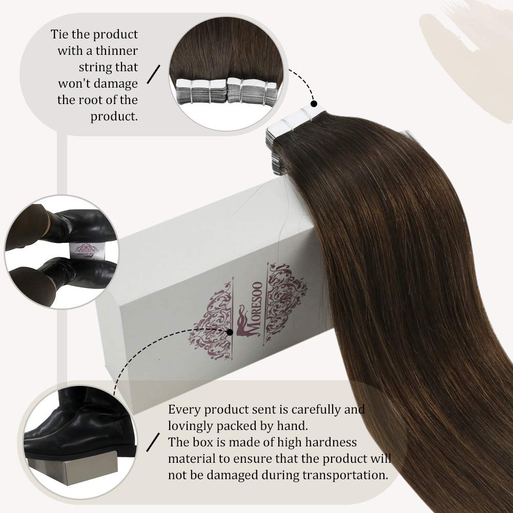- ★【Professional Choice】Your order will be processed within 24 hours; Moresoo Hair has been improving customer experience by exploring new hair materials and strong adhesive tapes; We will provide customer the finest hair and the strongest tape with our improvement