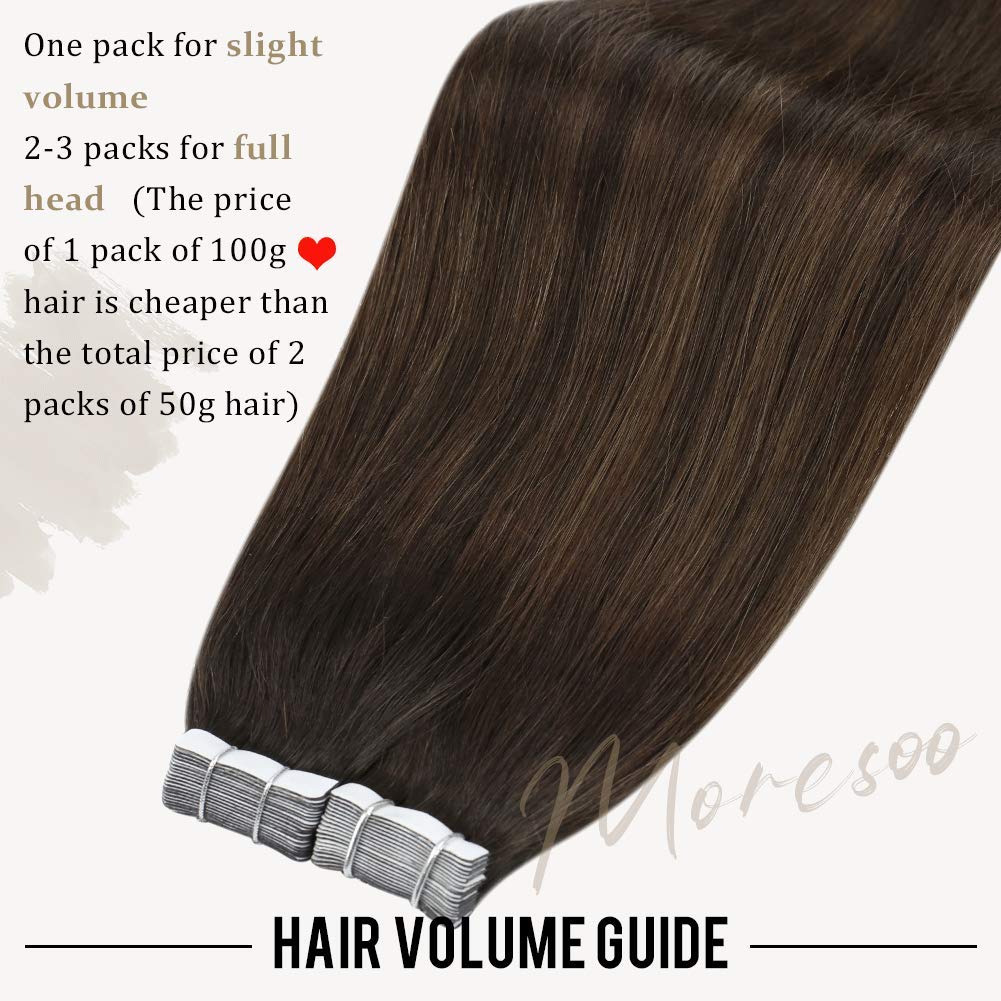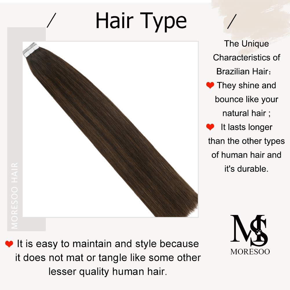 - ★【Moresoo Tape in Hair】Best Quality 100% remy human hair extensions; 12 Inch: 40 Pieces 60 Grams; 14to24 Inch: 40 Pieces 100 Grams per pack; Salon quality, soft like your own natural hair; All tapes are waterproof and more sticker than others; If treated properly, this tape in hair can be used for 3 to 6 months