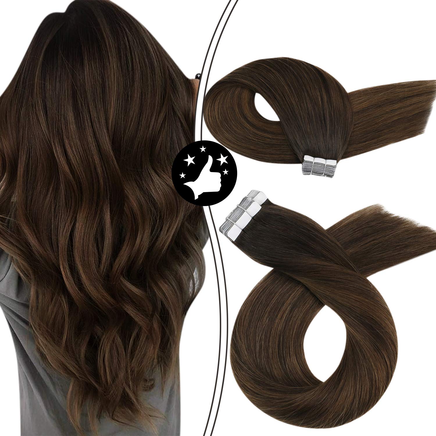 Tape in Hair Extensions Human Hair Moresoo Tape Hair Extensions 60g/40pcs Balayage Hair Extensions Brown Remy Natural Hair 12 Inch Tape in Human Hair Extensions Dark Brown Highlight with Medium Brown by Moresoo Store