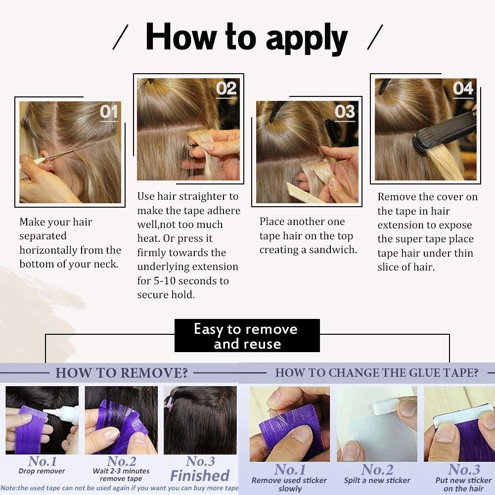 - ★【Quality Hair】High-Strength Tapes and Easy to Take Out,Specially developed high-strength invisible tape;Can be easily removed with professional glue remover