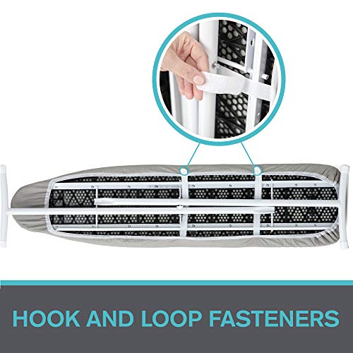 - Hook and Loop Fasteners: it's difficult to iron when your cover is slipping and sliding all over the place, so this cover is designed differently; it includes not one but two hook and loop fastener straps on the underside that help keep it secure; also features strong elasticized edges that help prevent added movement