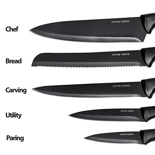 - Just the right knife for any task: 1x chef knife, 1x carving knife, 1x bread knife, 1x utility knife, 1x paring knife