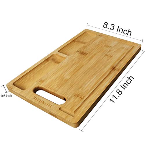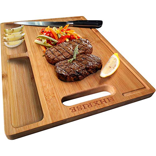 HHXRISE Organic Bamboo Cutting Board For Kitchen, With 2 Built-In Compartments