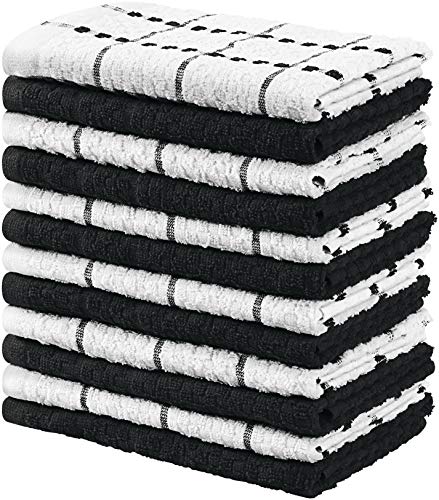 - Set includes 12 cotton dish towels with six black and six white dobby weave style kitchen towels measuring 15 x 25 inches