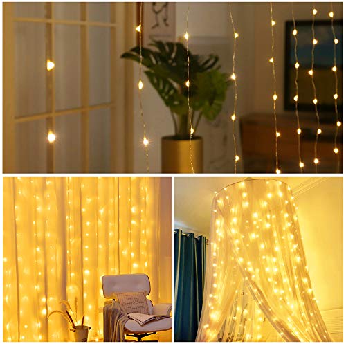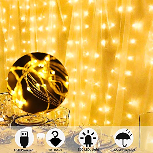 • SAFE & ENERYSAVING: 9.8FT(L)x9.8FT(H) Wall curtain fairy lights features 300 LED bulbs, USB powered.