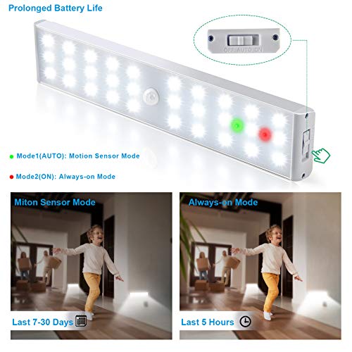 - [SIMPLIFIED OPERATION] Motion sensor closet light identified by 1-Step-Operation; Just choose the power switch to AUTO( Auto Mode), under cabinet led lights will be automatically activated in dark when detecting motion; Most people use this mode; Just 1-step-operation!