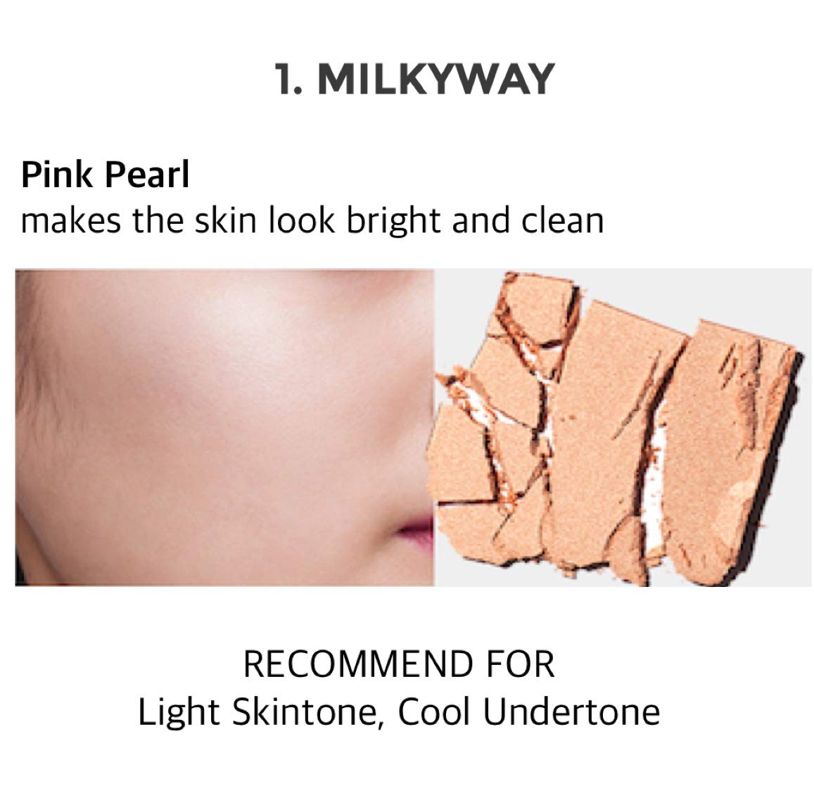 Compact Powder Highlighter - SELF BEAUTY Aurora Illuminating Long Lasting Brightness Natural Face & Body Glow Healthy Skin Tone 7g/0.25oz No.01 Milkyway