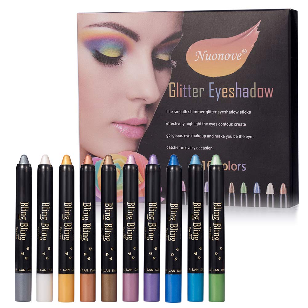 Eyeshadow Glitter, Eyeshadow Stick, Shimmer Eyeshadow, Pen Eyeshadow, Ultra Pigmented Makeup Eye Shadow Powder Long Lasting Waterproof, 10 Colors by Nuonove