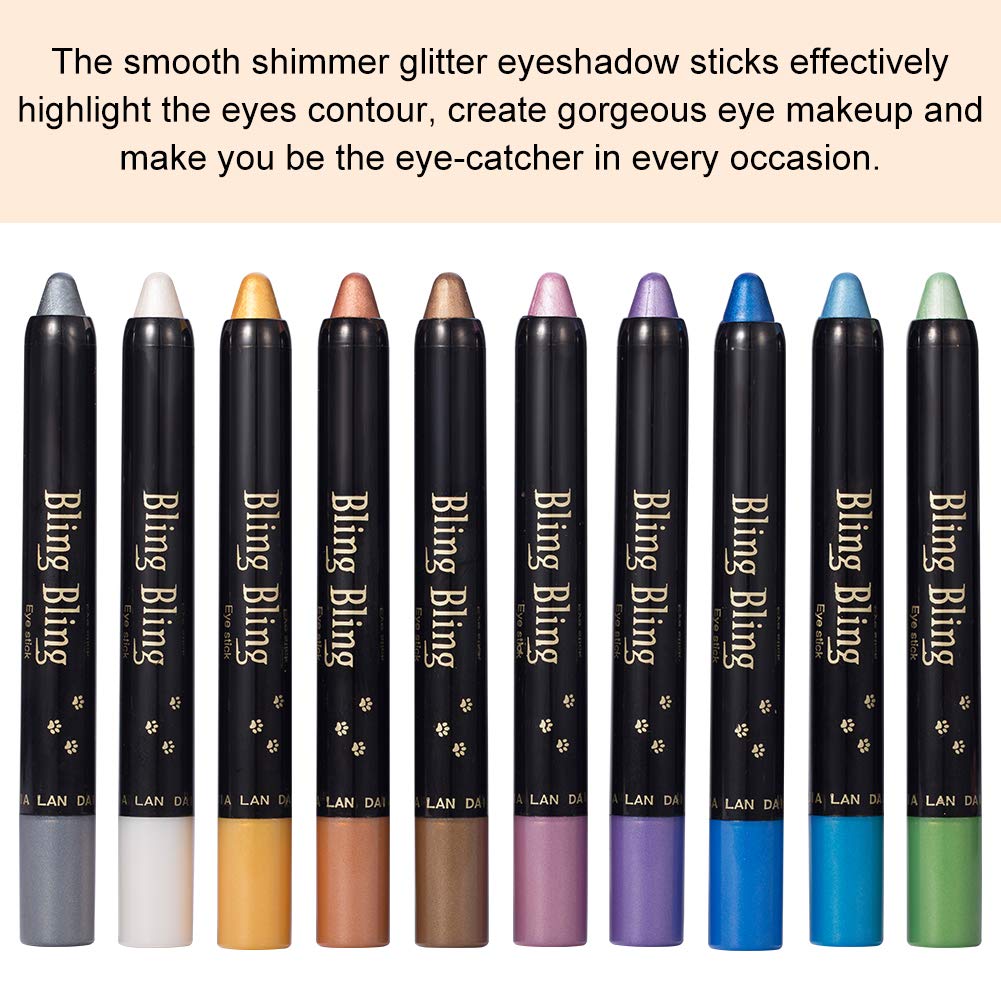 - The smooth shimmer glitter eyeshadow sticks effectively highlight the eyes contour, create gorgeous eye makeup and make you be the eye-catcher in every occasion.