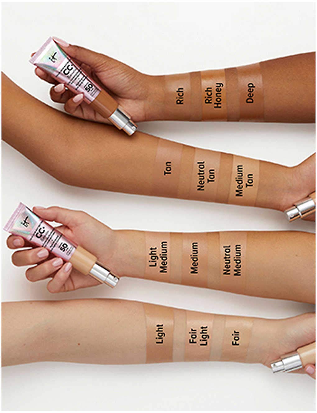 - It Cosmetics CC + Illumination Color Correcting Cream SPF 50 + Anti aging hydrating serum
