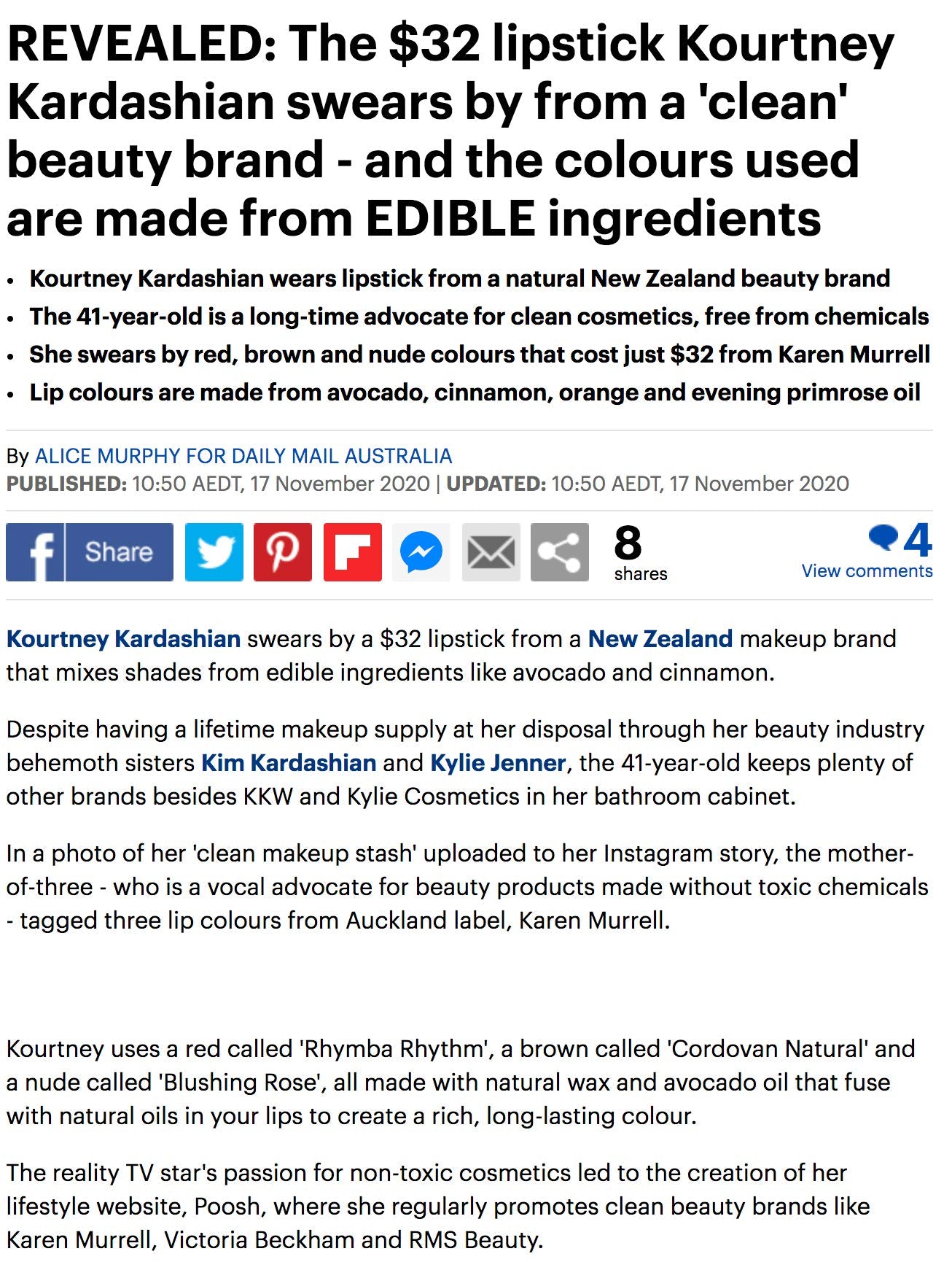 • KAREN MURRELL LIPSTICKS - Made from all natural ingredients for a long-lasting, creamy and smooth application. Designed in New Zealand