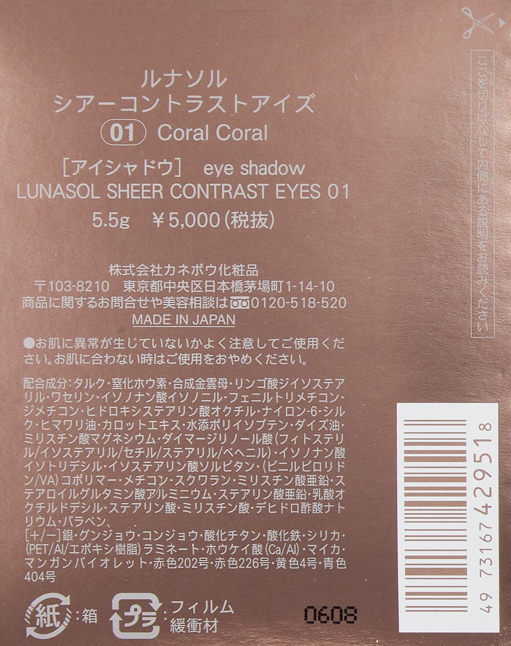 LUNASOL Sheer Contrast Eyes 5.5g 01 Coral Coral