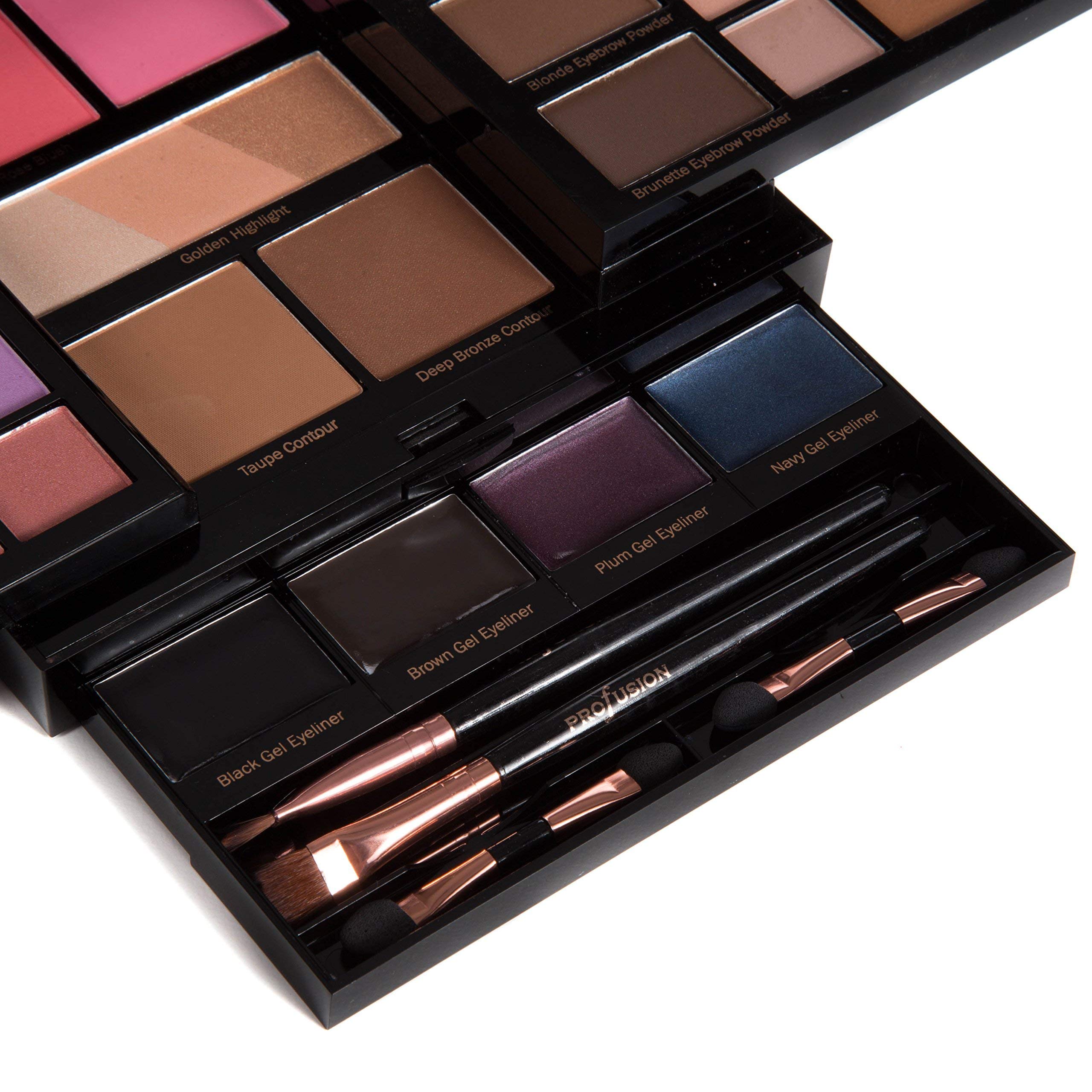 Profusion Cosmetics - Pro Elevation Kit - Starter Makeup Artist Kit Eyeshadows Lip Shades Gel Eyeliners Highlighters Contour Bronzer Brow Powder Eyebrow Wax Eyebrow Highlighter Applicator Brushes by Profusion Cosmetics Store