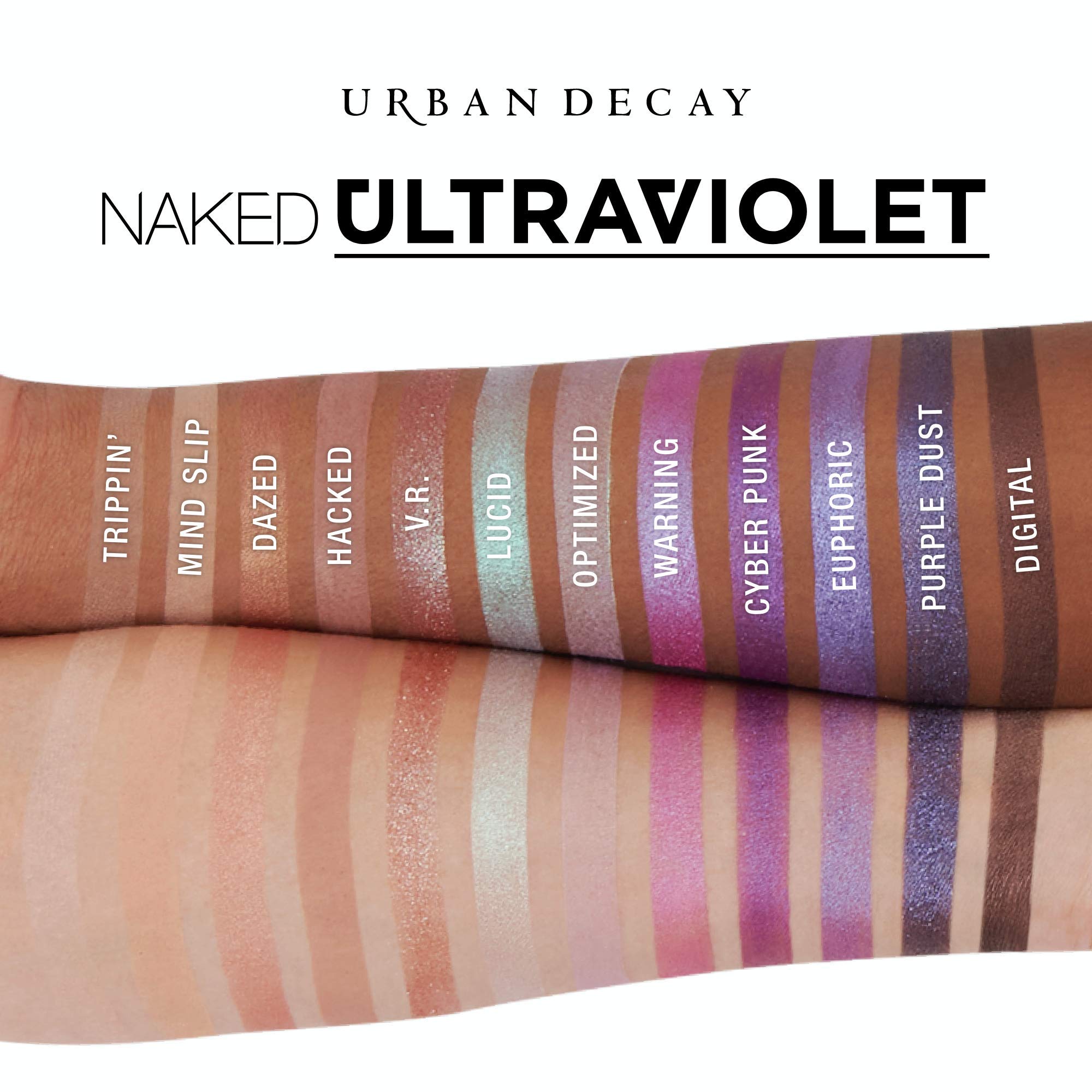 - HIGH-PIGMENT SHADES - Naked Ultraviolet palette shades include cruelty-free Trippin’, Mind Slip, Dazed, Hacked, V.R., Lucid, Optimized, Warning, Cyber Punk, Euphoric, Purple Dust, and Digital.