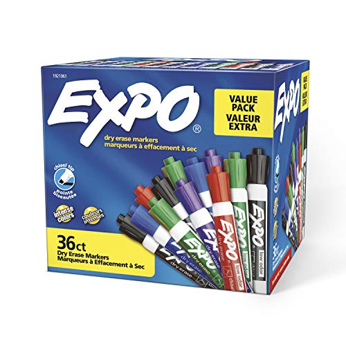 Details: Expo Low Odor Dry Erase Markers feature vivid ink that’s easy to see from a distance and provides consistent color quality. These chisel tip dry erase markers erase cleanly and easily from whiteboards and other nonporous surfaces with a dry cloth or Expo eraser. The dry erase marker ink is specially formulated to be low odor, making it perfect for use in classrooms, home school, and offices. Use your colorful Expo dry erase markers to track, schedule, and present.