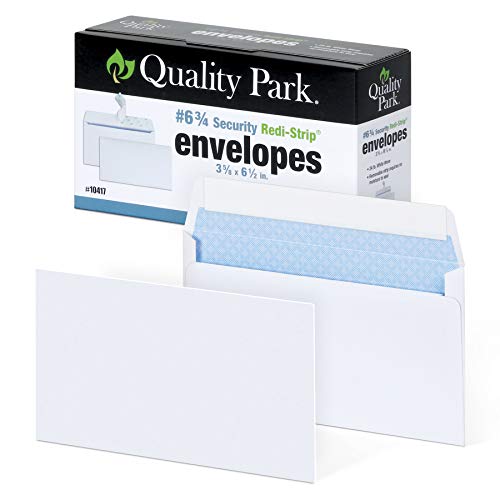 Brand: Quality ParkColor: WhiteFeatures: SAVE TIME WITH SELF-STICK: Quality Park #6 3/4 Security Envelopes have a strong peel & stick closure that helps you fly through mailings in record time ENHANCED SECURITY: Offer the protection clients deserve & protect yourself from liability; a security tint makes envelopes hard to see...