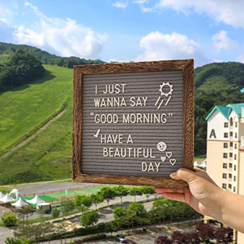 Rustic Wood Frame Gray Felt Letter Board 10x10 inch. Precut White & Gold Letters