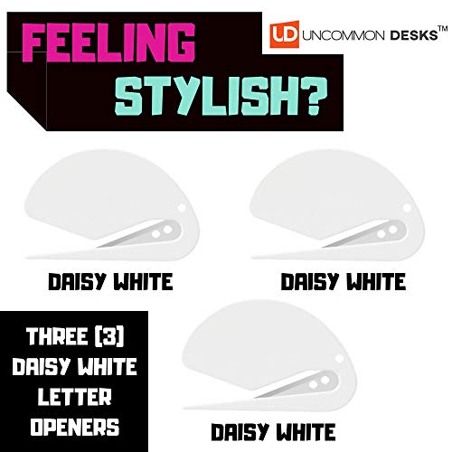 Details: Enjoy our 3-pack of brightly colored, Daisy White letter openers. Our Uncommon Desks letter openers are made with durable plastic which won't bend or break while using to open all sizes of envelopes. Cut through paper and letters like warm butter, and open your mail with ease!