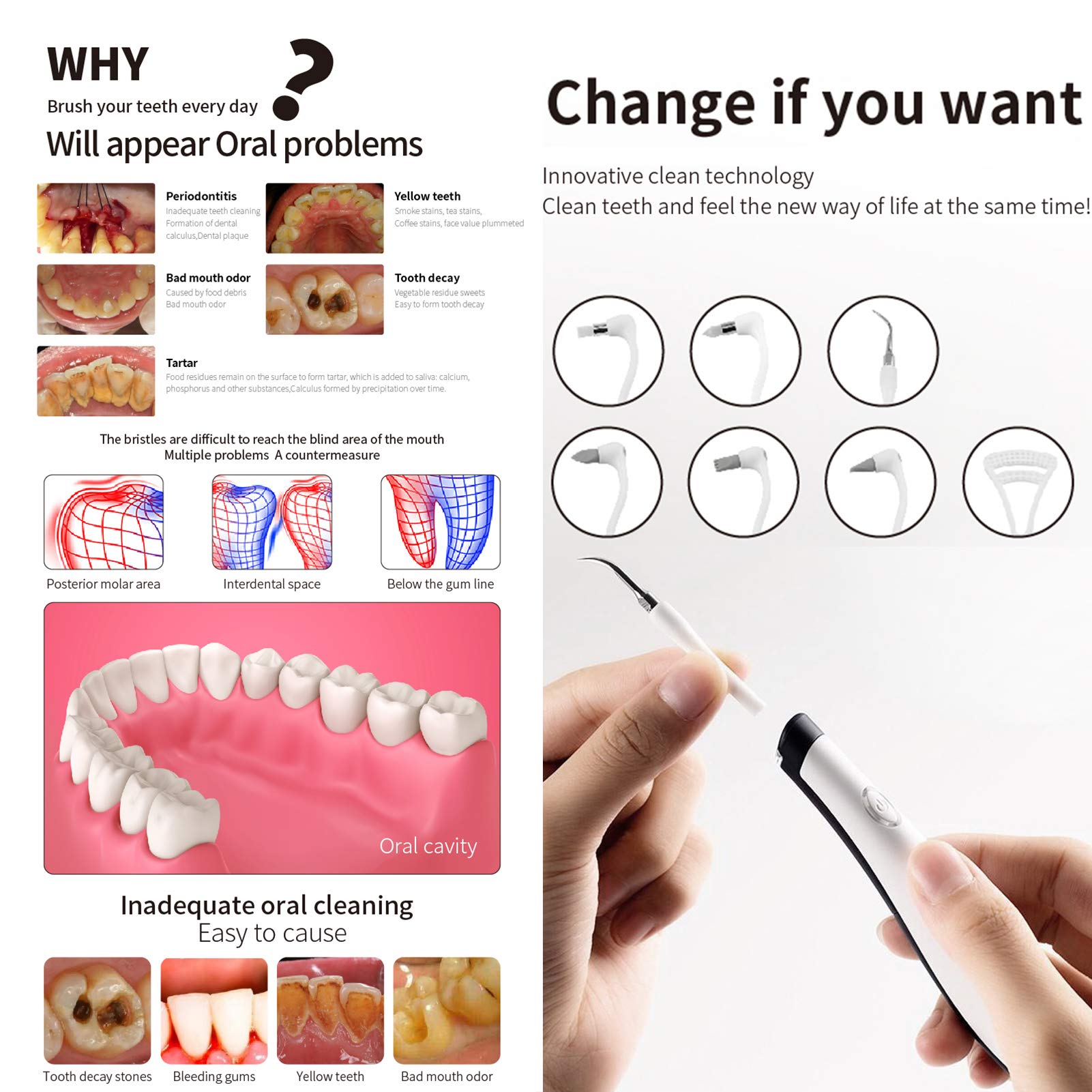 - 🟢HEALTH MATERIAL & WATERPROOF :This tartar-removing device is made with safe & hygienic food-grade silicone, and medical grade stainless steel, it makes you feel more comfortable and is used easier.