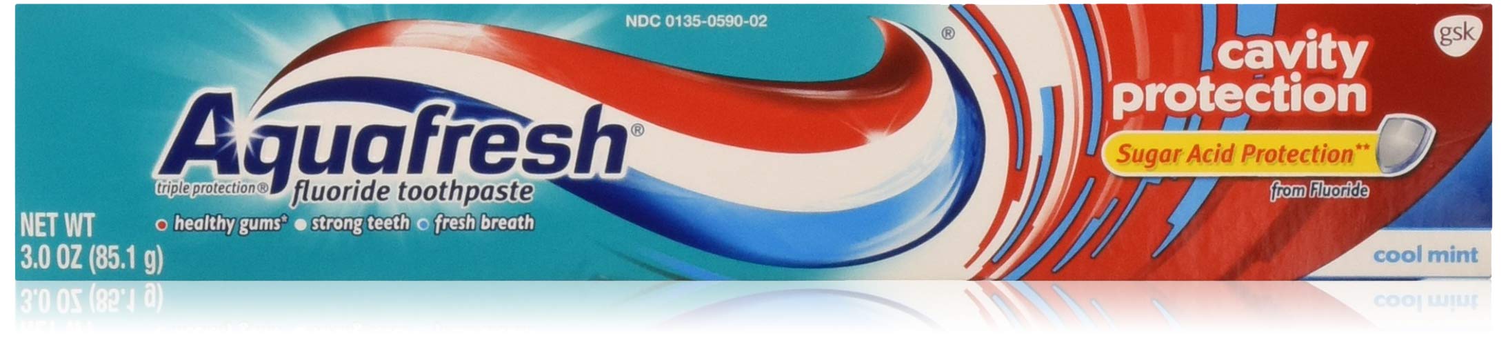 Brand: Visit the Aqua Fresh Store Aquafresh Cavity Protection Cool Mint Fluoride Toothpaste is a fresh-tasting, 3-in-1 family toothpaste, with sugar acid protection thanks to fluoride that protects against sugar acids in plaque, the key cause of cavities. As you brush with the great-tasting formulation, active minerals microscopically absorb into...
