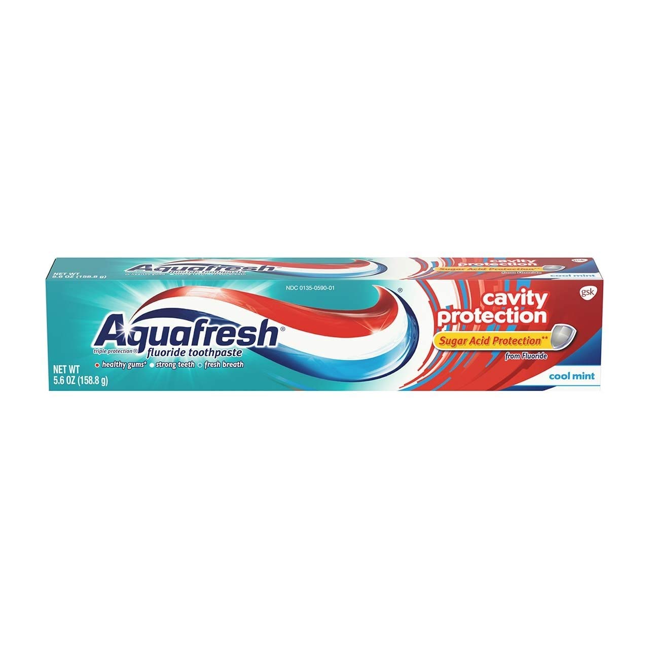 AquaFresh Cavity protection Toothpaste Fluoride Aqua Fresh Toothpaste Triple protection tooth paste 5.6oz Each (Pack of 4) Brand: Visit the Aqua Fresh Store Aquafresh Cavity Protection Tube Cool Mint, 5.6 Ounce (Pack of 4)