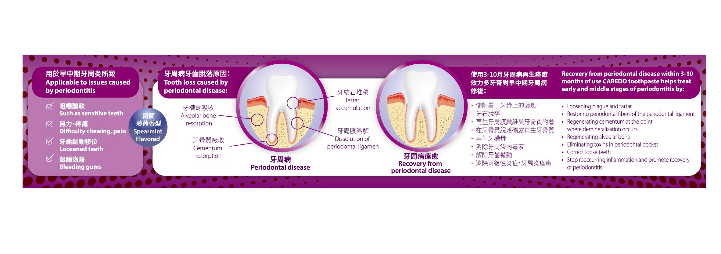 - Recovery from periodontal disease within 3-10 months of using CAREDO Toothpaste