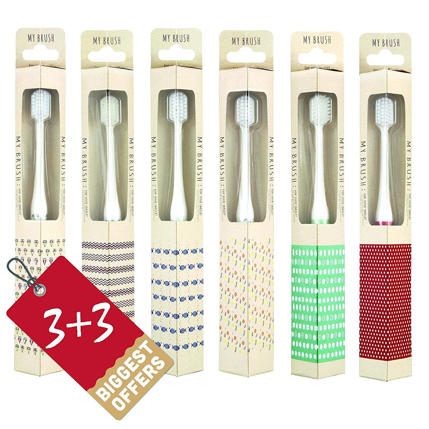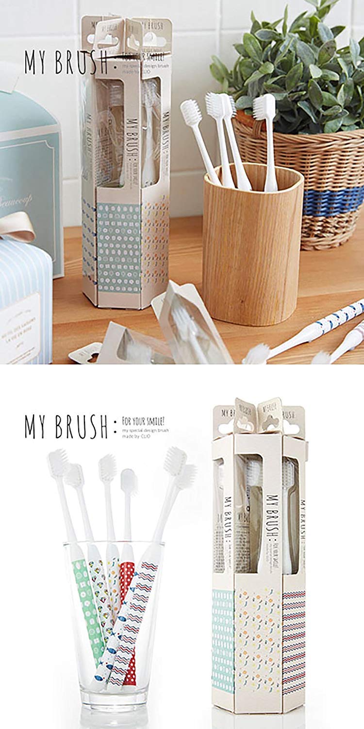 CLIO Designer Toothbrush with Ultra Soft Bristle, Tapered, For Sensitive Gums, Compact Size Head, Non-Nylon - 6pack(Color:Random)