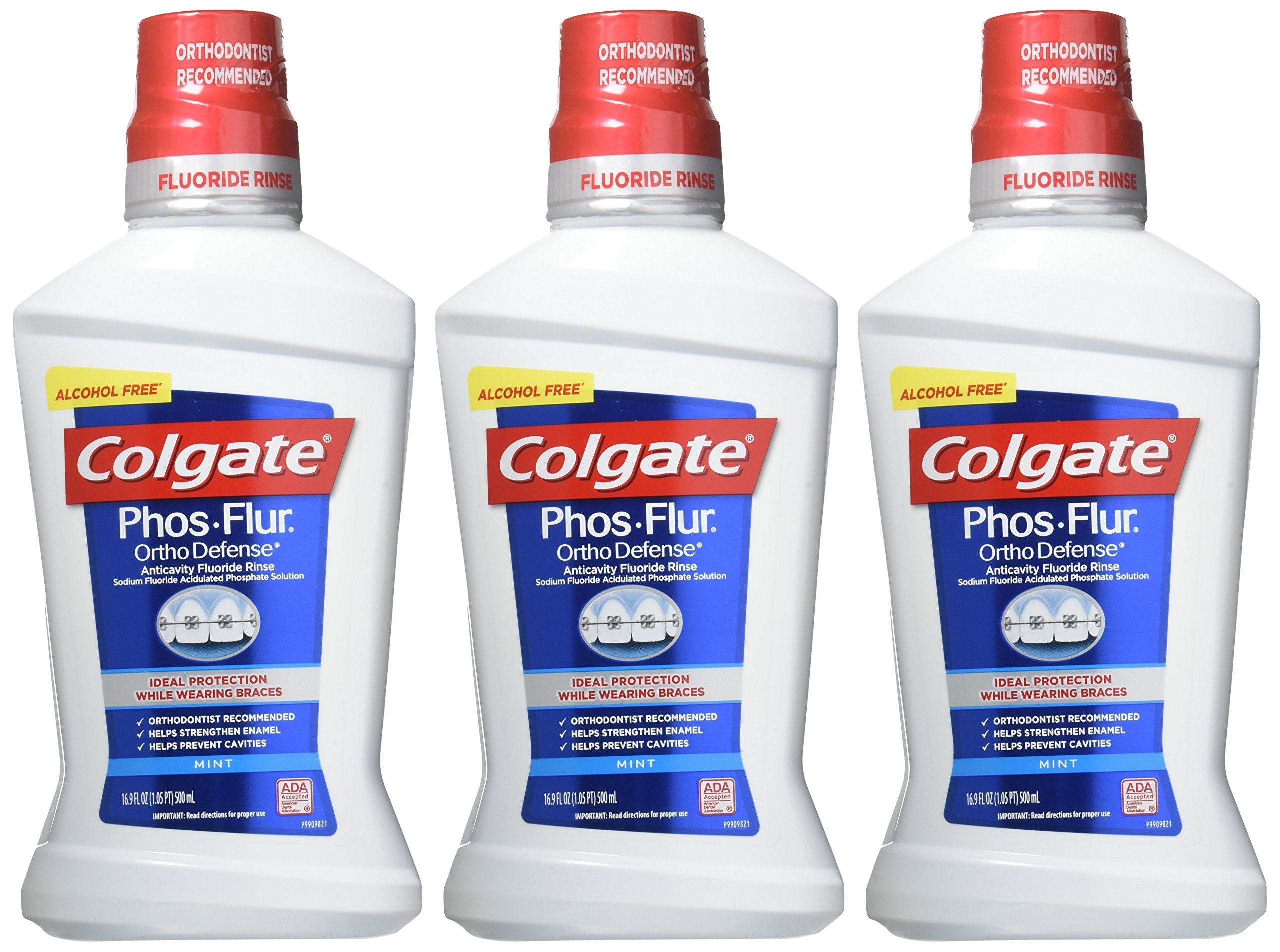 Colgate Phos-Flur Ortho Defense Anticavity Dental Rinse Mint 16 OZ (pack of 3) 206017 Brand: Visit the Colgate Store Colgate Phos-Flur Anti-Cavity Fluoride Rinse Mint 16.9 oz (Pack of 3)