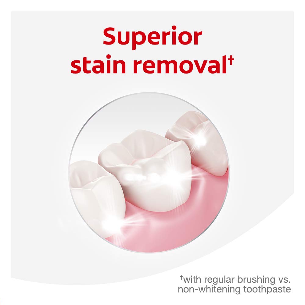 - Whitening toothpaste superior stain removal formula helps to restore teeth's natural whiteness (with regular brushing vs. non-whitening toothpaste)