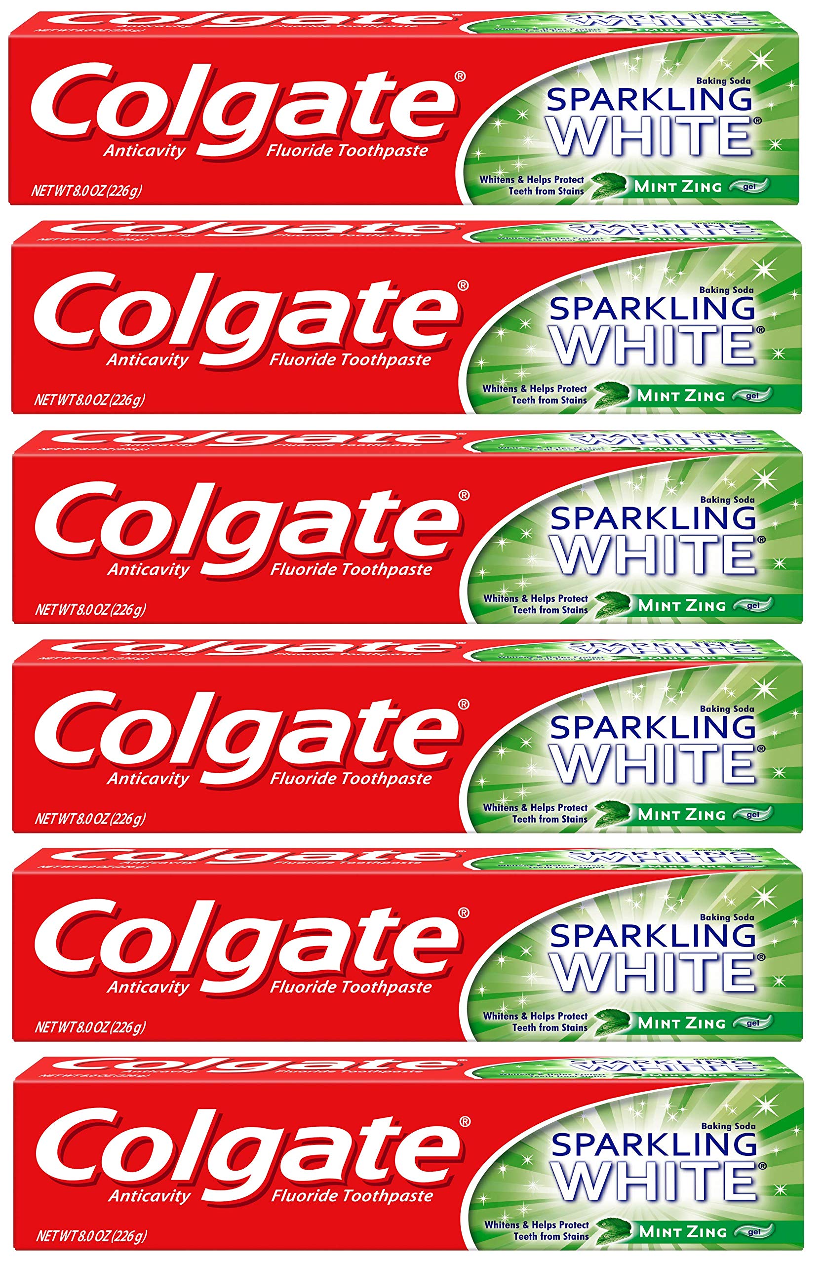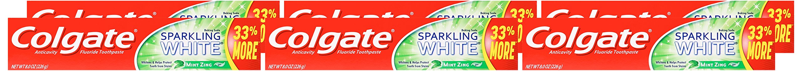 Colgate Sparkling White Whitening Toothpaste, Mint - 8 ounce (6 Pack)