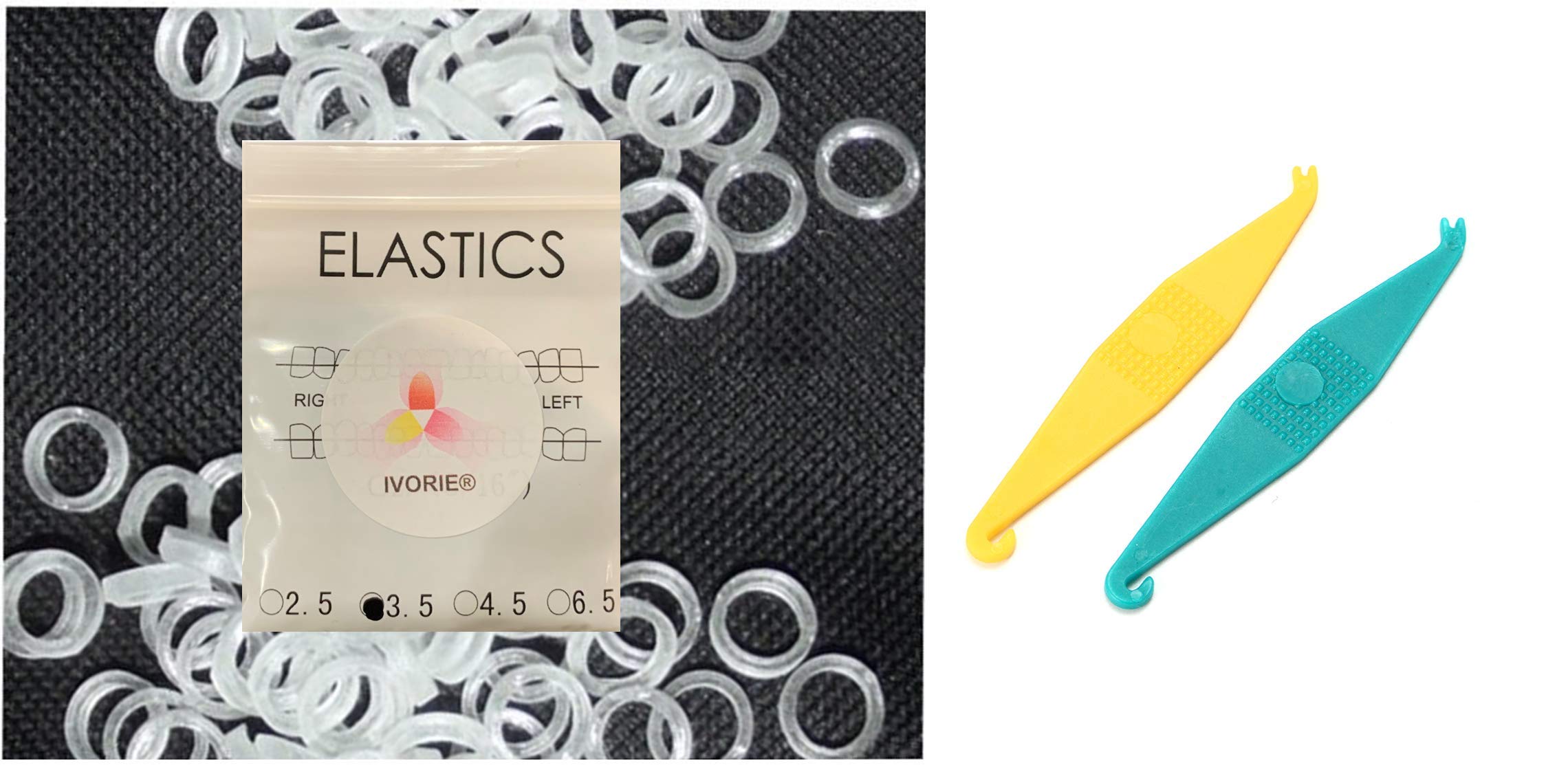 Dental Orthodontic Elastic Rubber Bands 100 Pack and Placers for Teeth Gap Closing (Clear 3/8" Heavy 4.5 oz)