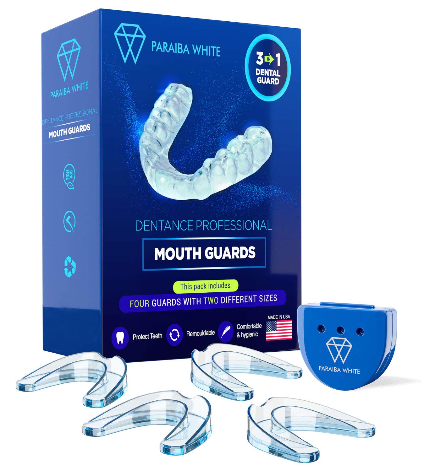 Dentance Professional Dental Guards – Set of 4 Made In USA - Custom Fit - BPA Free - Perfect Dental Guards for Teeth Grinding and Sport Athletes - Regular and Heavy Duty protection - Teeth Whitening