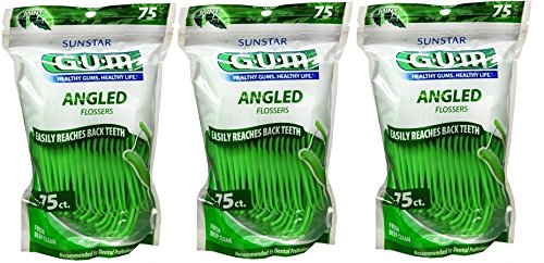 - Pack of Three, 75-Count of G-U-M Eez-Thru Angled Flossers, Mint (225 Total)