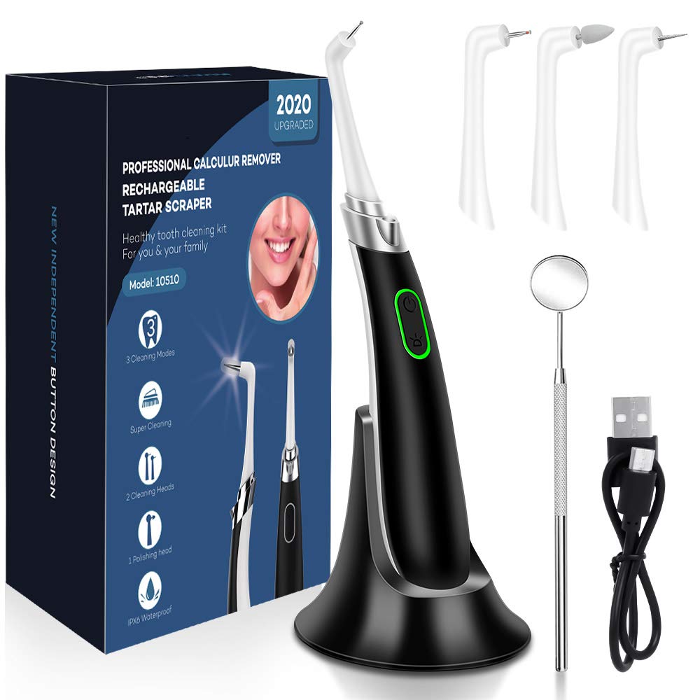 Electric Dental Calculus Remover, TUMPLIK Tooth Polisher Tartar Scraper with 3 Adjustable Modes Professional Teeth Cleaning Kit - 3 Replaceable Clean Heads, Mouth Mirror