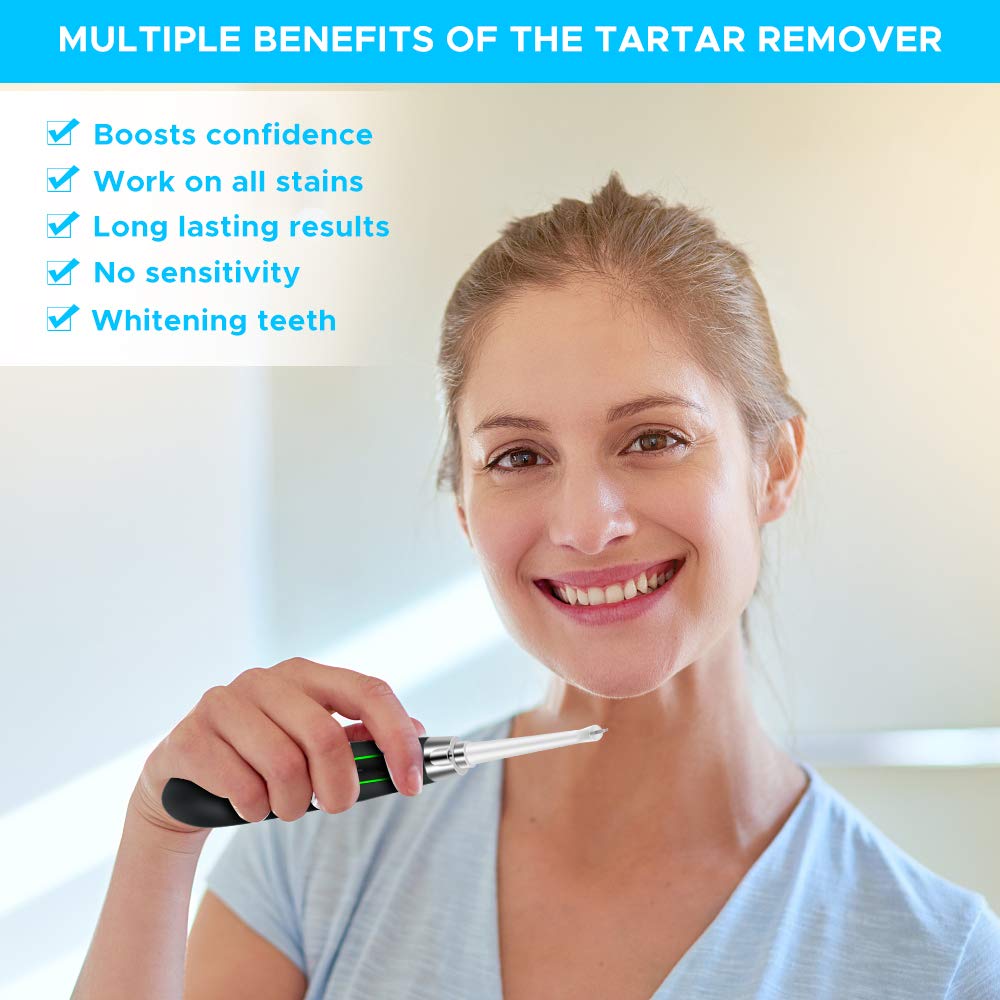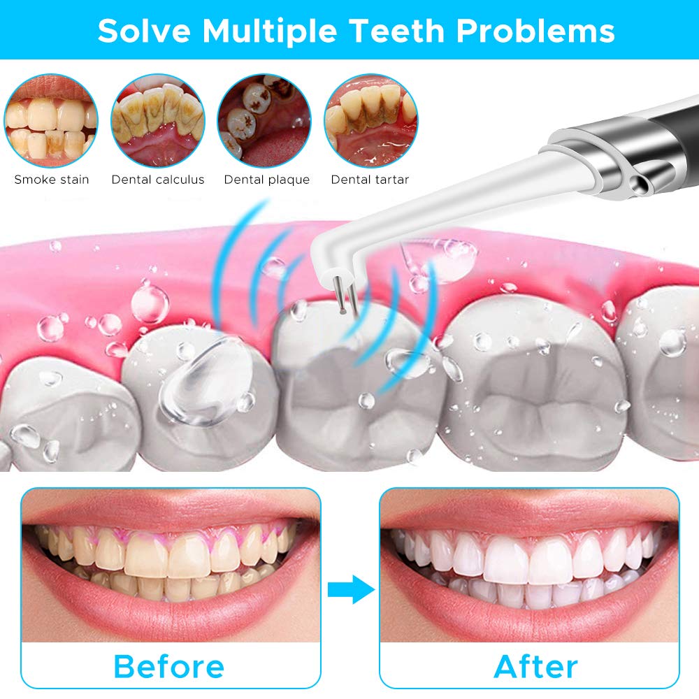 • 【More Effective Cleaning】High frequency vibration (26000-31000 beats / min) with ultrasonic technology, can clean up teeth stains more effectively, solve hardest areas that cannot be reached by your daily oral cleaning, maintain your teeth and gums healthy. Best partner to remove dental plaque, calculus, tartar and coffee stains as you have smoke, drink wine or coffee for a long time.