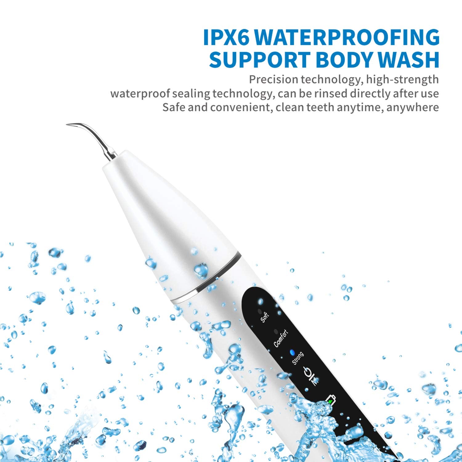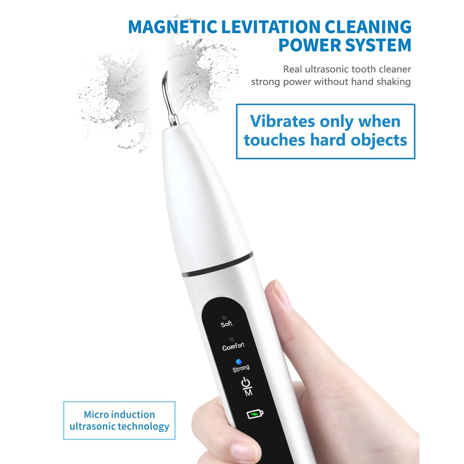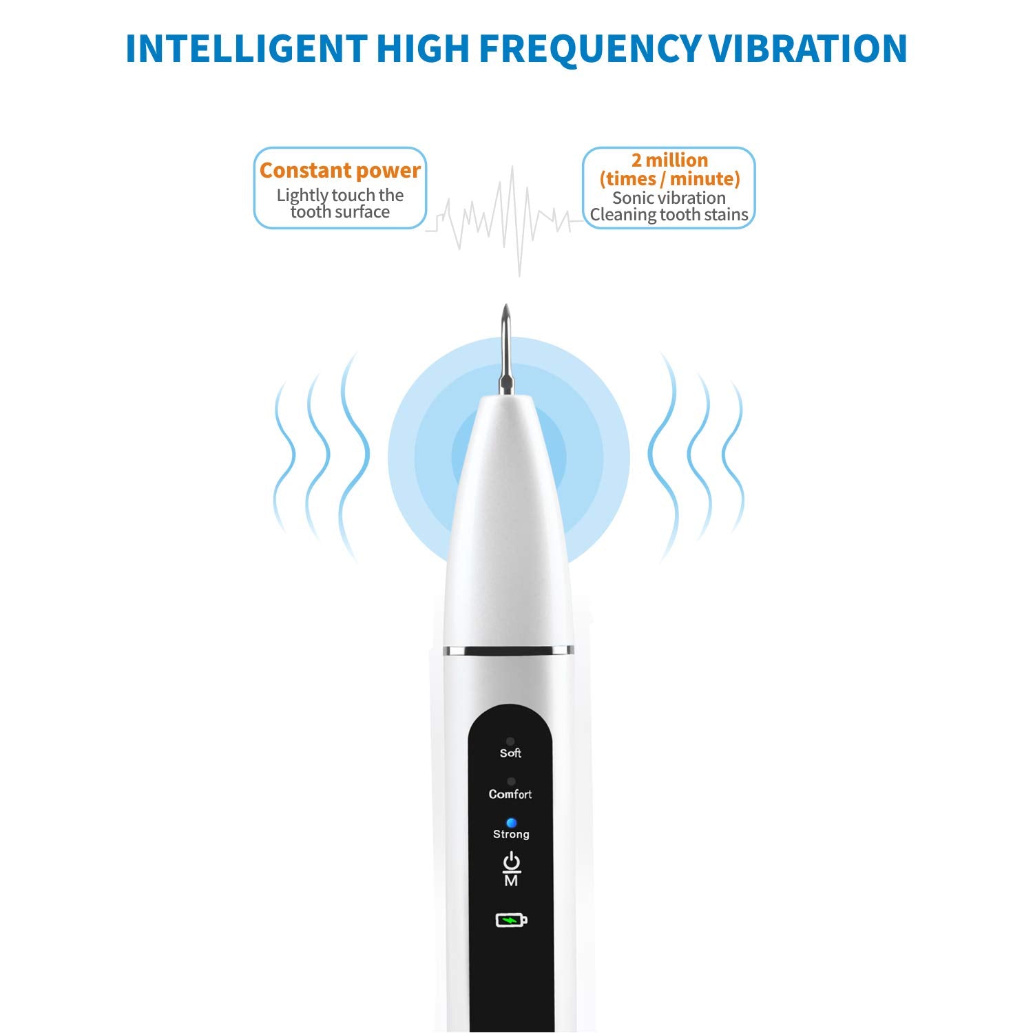 - Induction working mode: Dental calculus remover works only when stainless steel tip reaches with your teeth.