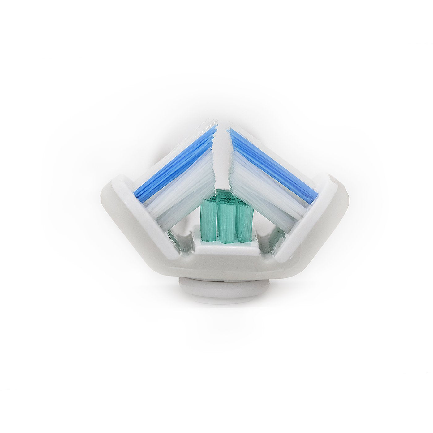 Every part of the TotalTooth system was designed to take the thinking out of brushing. The 3 sided toothbrush head gently embraces the inside, outside and top surfaces of the teeth eliminating the chance of missing hard to reach zones. It includes a self-adjusting technology that spans the width of the tooth applying even pressure to prevent damaging your teeth & gums by brushing too hard. The 360° pivoting head follows the track of your teeth taking the strain off your wrist and making a seamless transition from one side of your mouth to the other. The sonic rechargeable handle provides a self-timer with a pause reminder when it’s time to move zones. It also comes with 4 brushing modes for a more personalized experience.