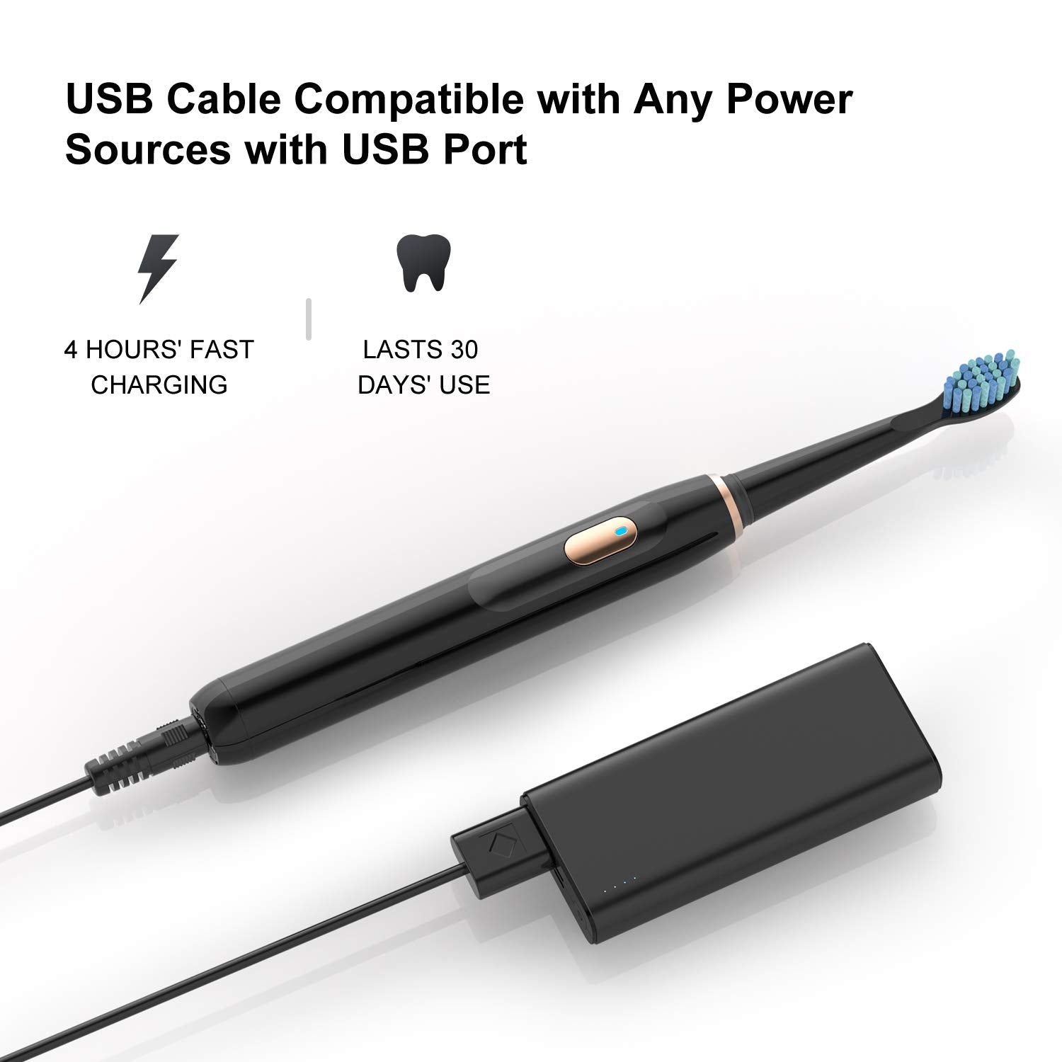 • One 4-Hours Charge Last 30 Days - fantastic for Travel/Business trip or home use. Build in lithium battery compatible with any power source with an auto shut off after a full charge and a low battery reminding, USB charging. You only need to charge for 4 hours but can last for 30 days. Get rid of the trouble of charging weekly from other regular electric toothbrushes. Say goodbye to the trouble brought by the disposible toothbrush.