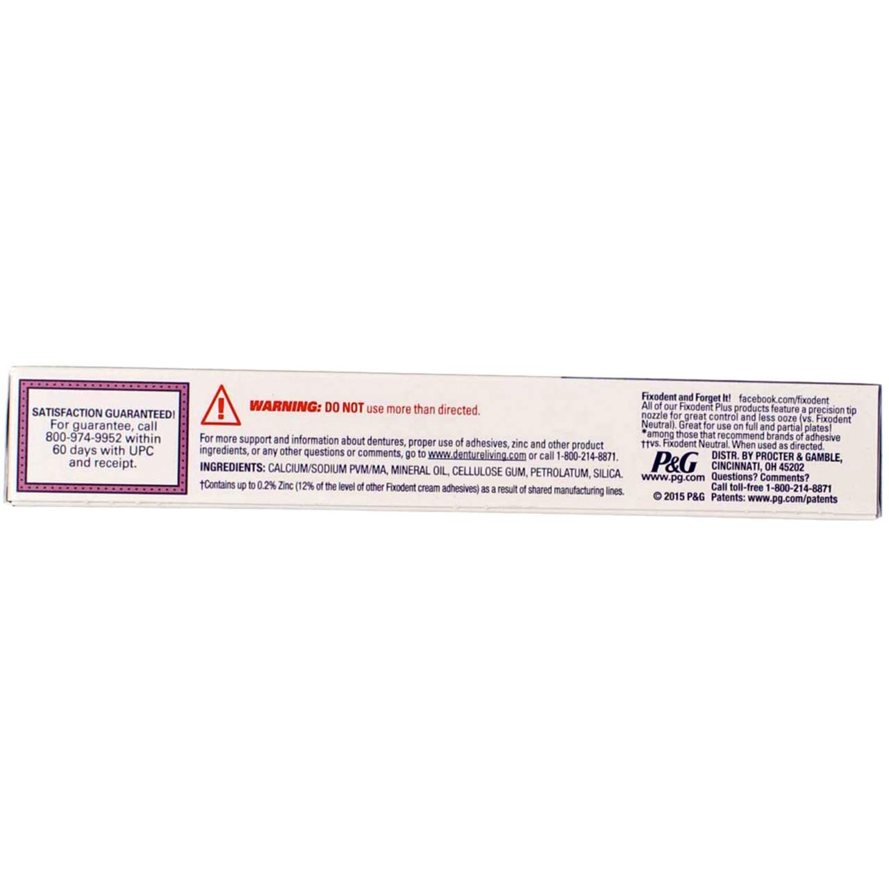 - No zinc added. Contains up to 0.2% zinc (12% of the level of other Fixodent cream adhesives) as a result of shared manufacturing lines