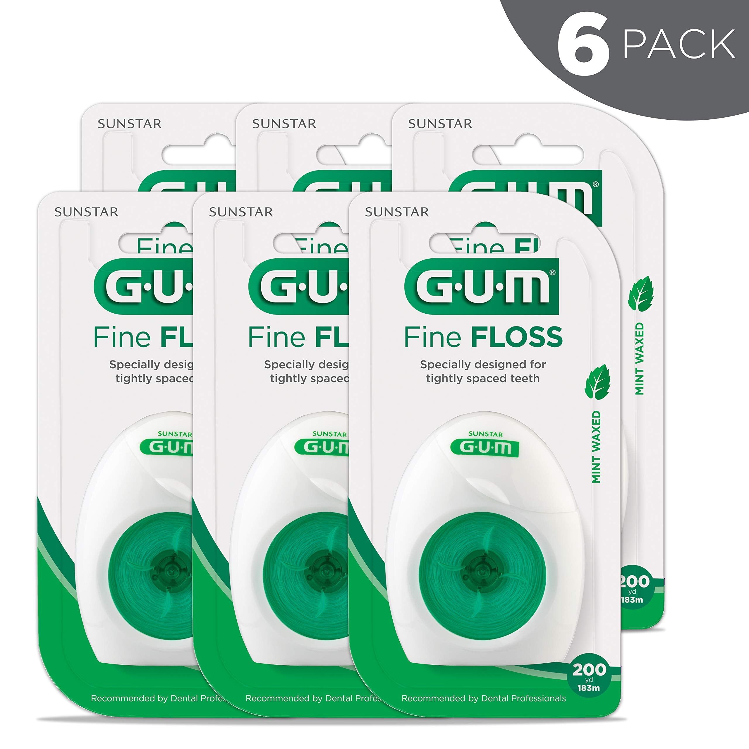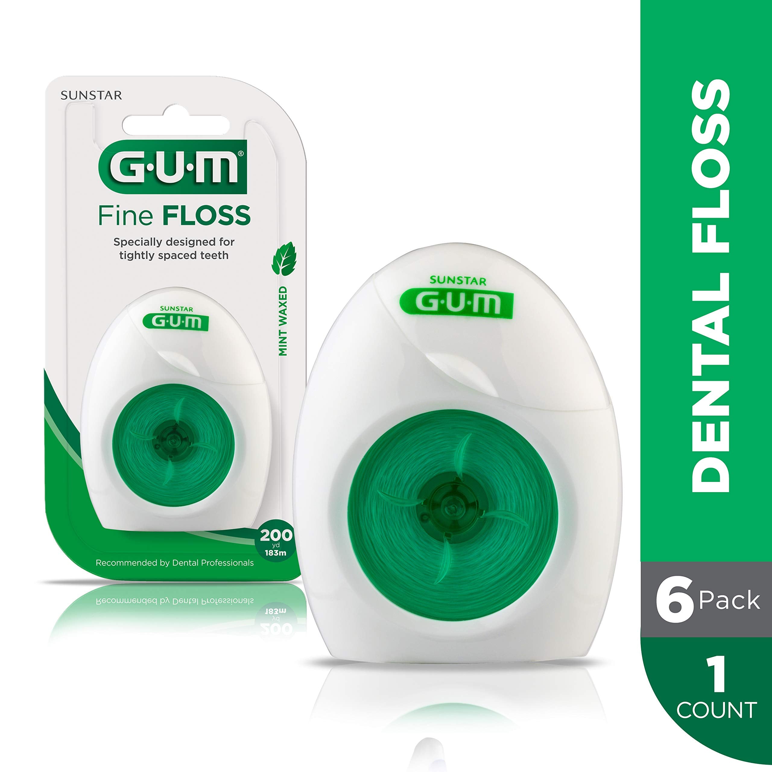 GUM Fine Waxed Dental Floss, Rewindable Dispenser, Mint, 200 Yards (Pack of 6)