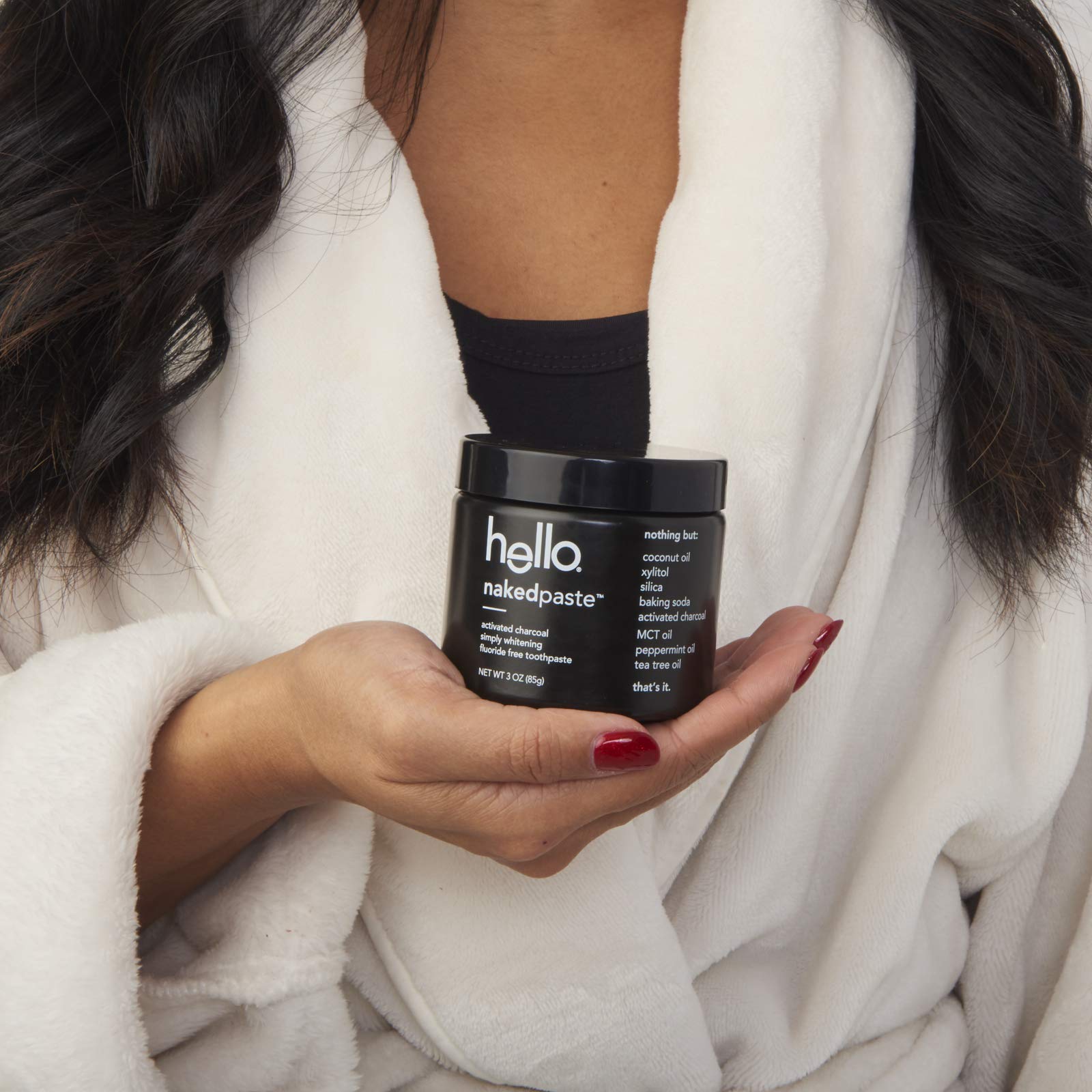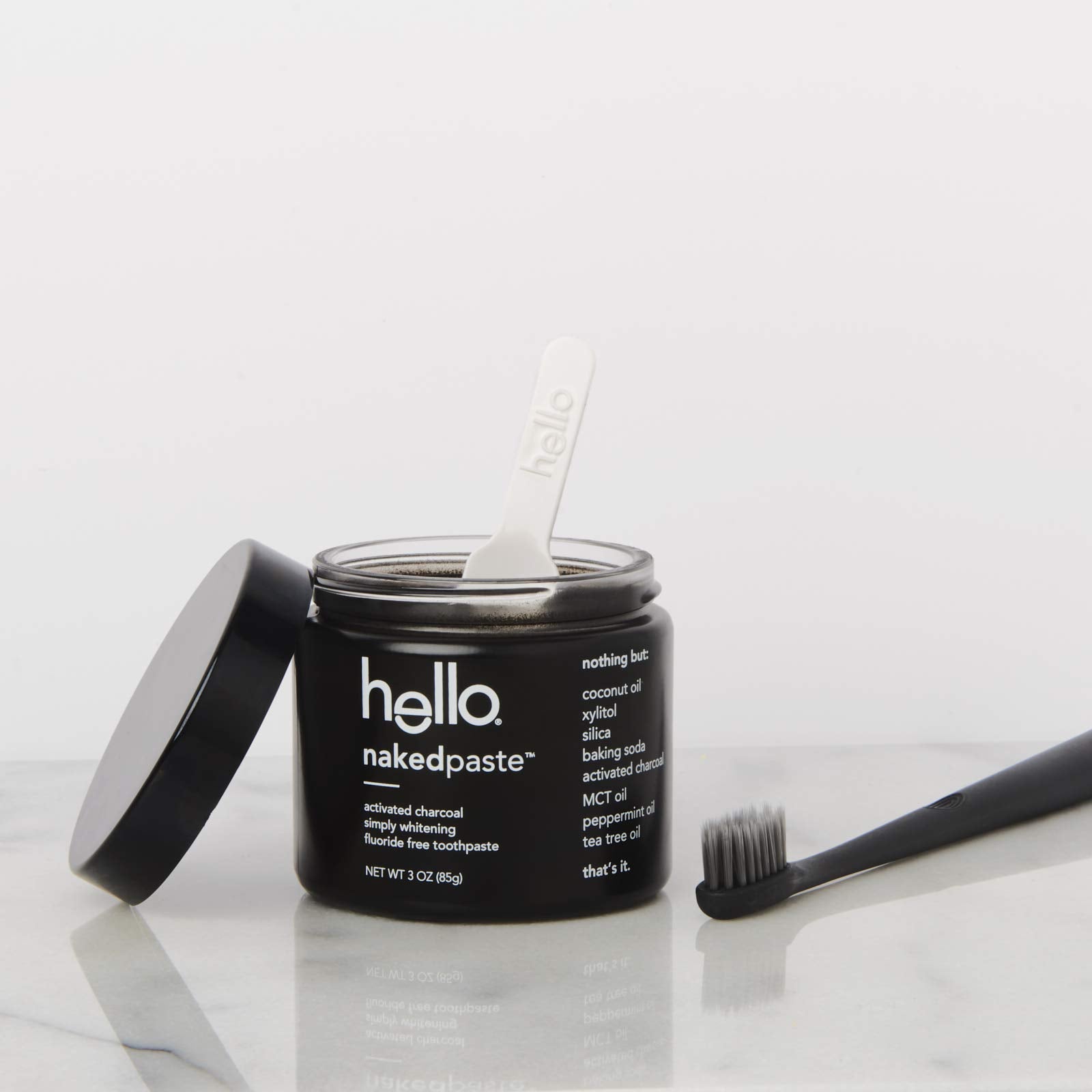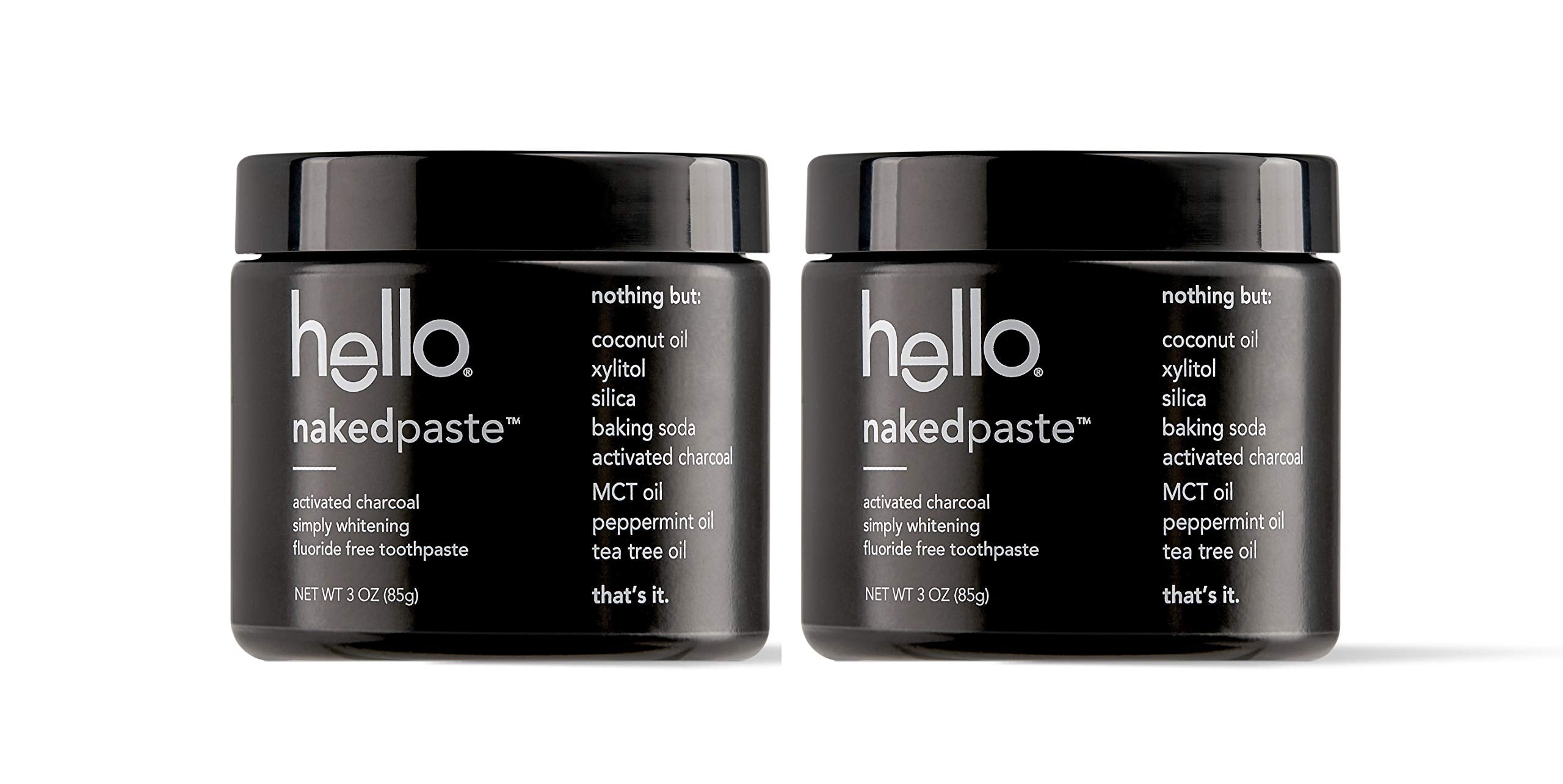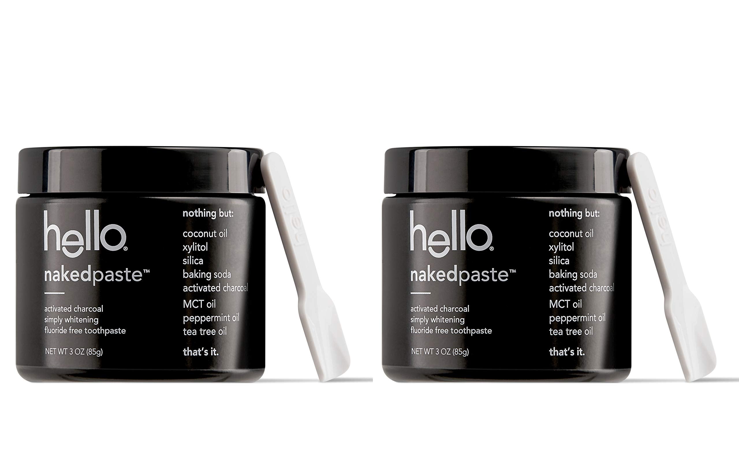 - Contains 2 glass jars of naturally friendly hello activated charcoal fluoride free nakedpaste toothpaste