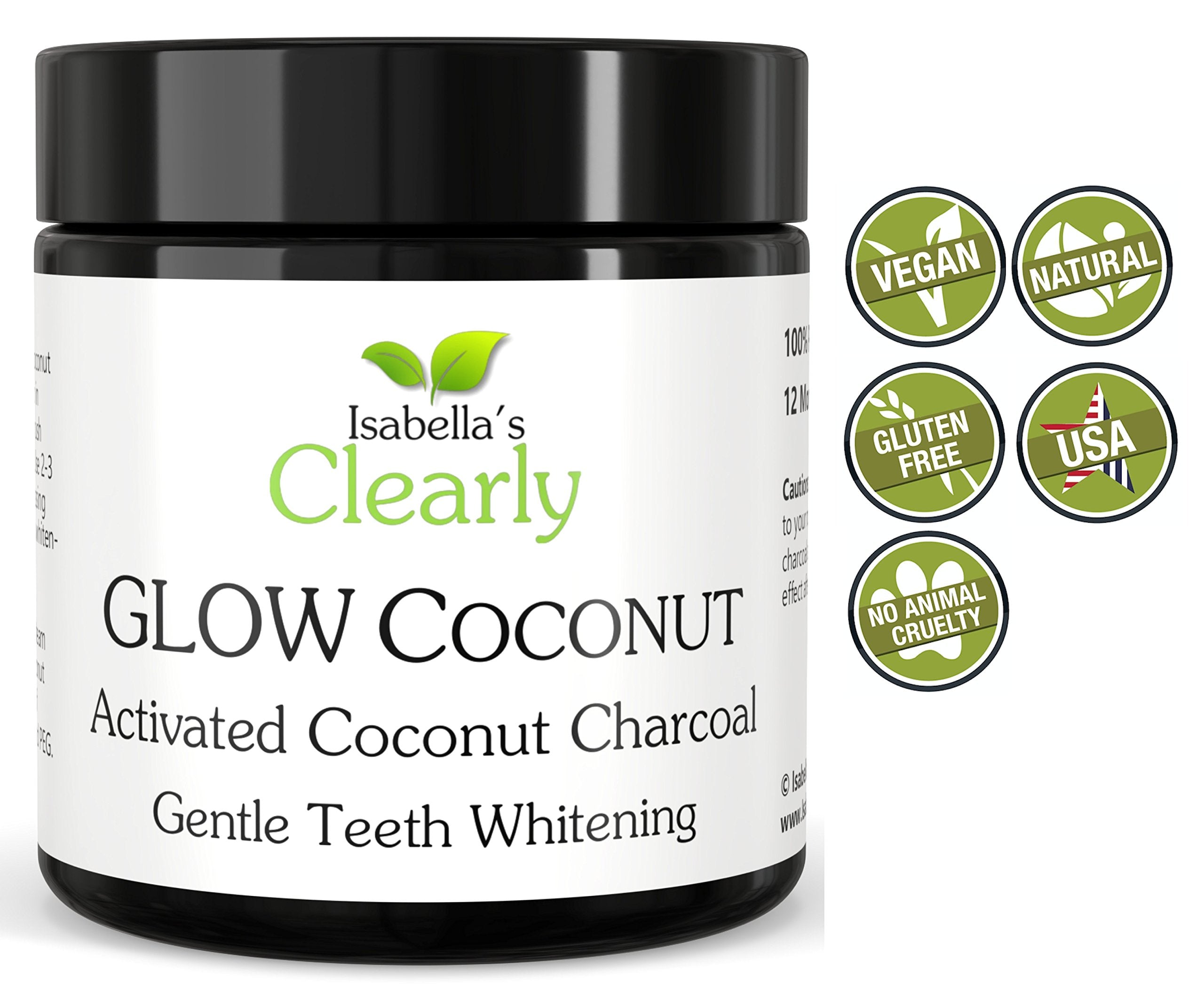 Isabella’s Clearly GLOW COCONUT (BULK) Teeth Whitening Activated Charcoal 100% Pure Food Grade Non-GMO. Better than Strips,Toothpaste, Bleach. Removes Stains, Plaque. USA (100g, 12 Months Supply) by Isabella's Clearly