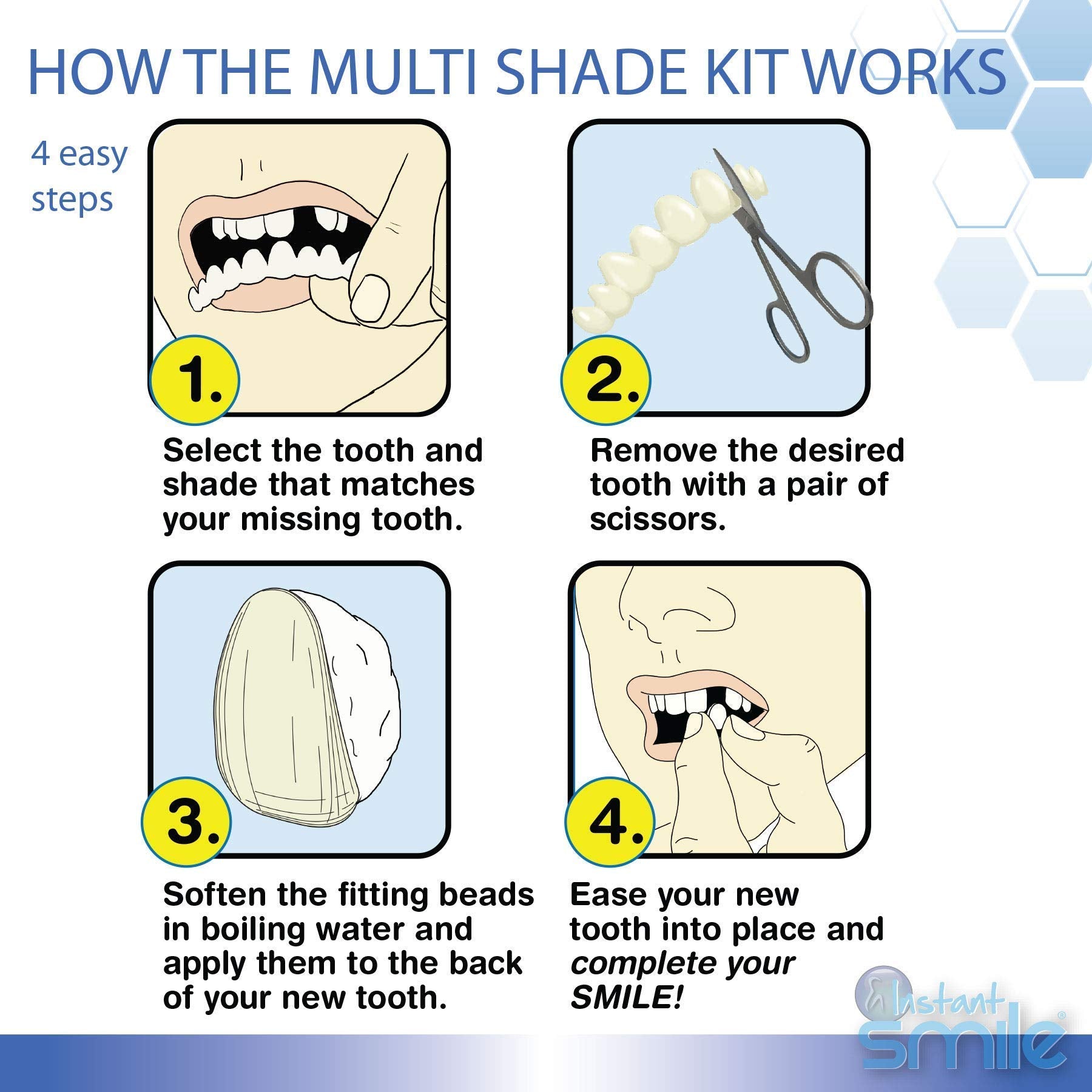 - Improve your smile with a realistic solution! 3 enhanced shades of teeth for the perfect match to replace your missing tooth!