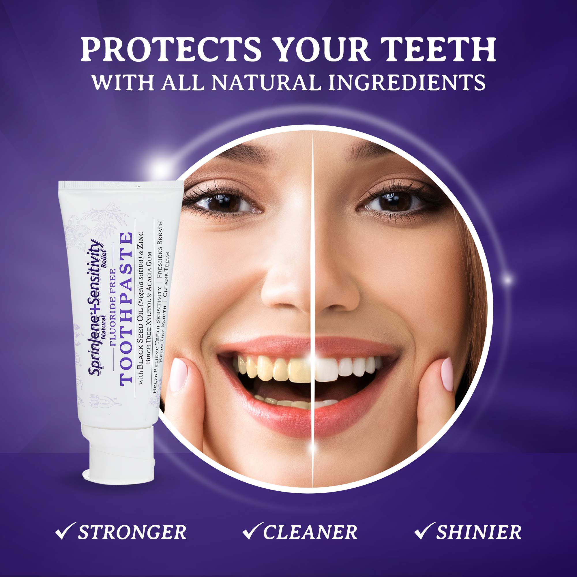 Natural 4-Pack Sensitivity Fluoride Free Toothpaste for Clean Teeth and Fresh Breath, SLS-Free Toothpaste with Zero Sugar, Vegan, Gluten-Free, 3.5 oz - SprinJene by SprinJene Store