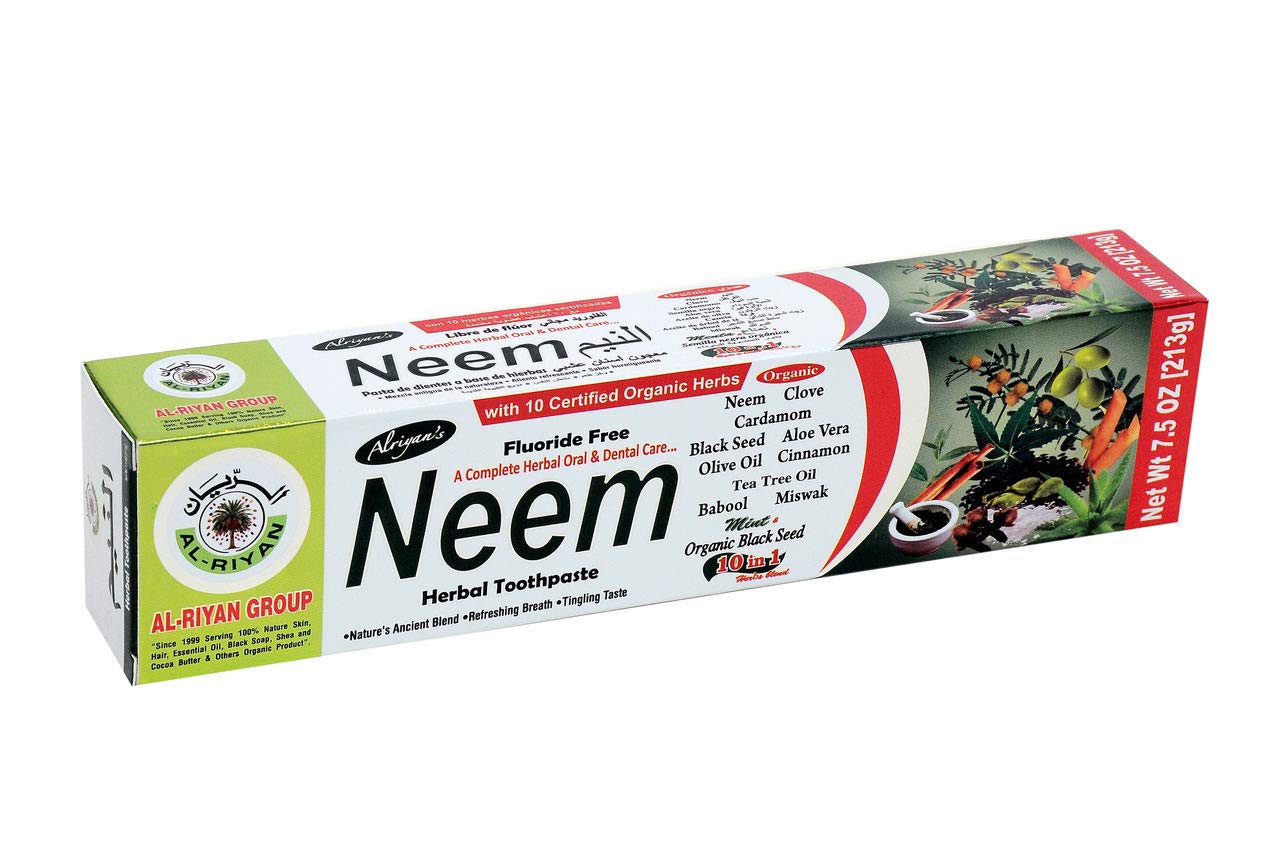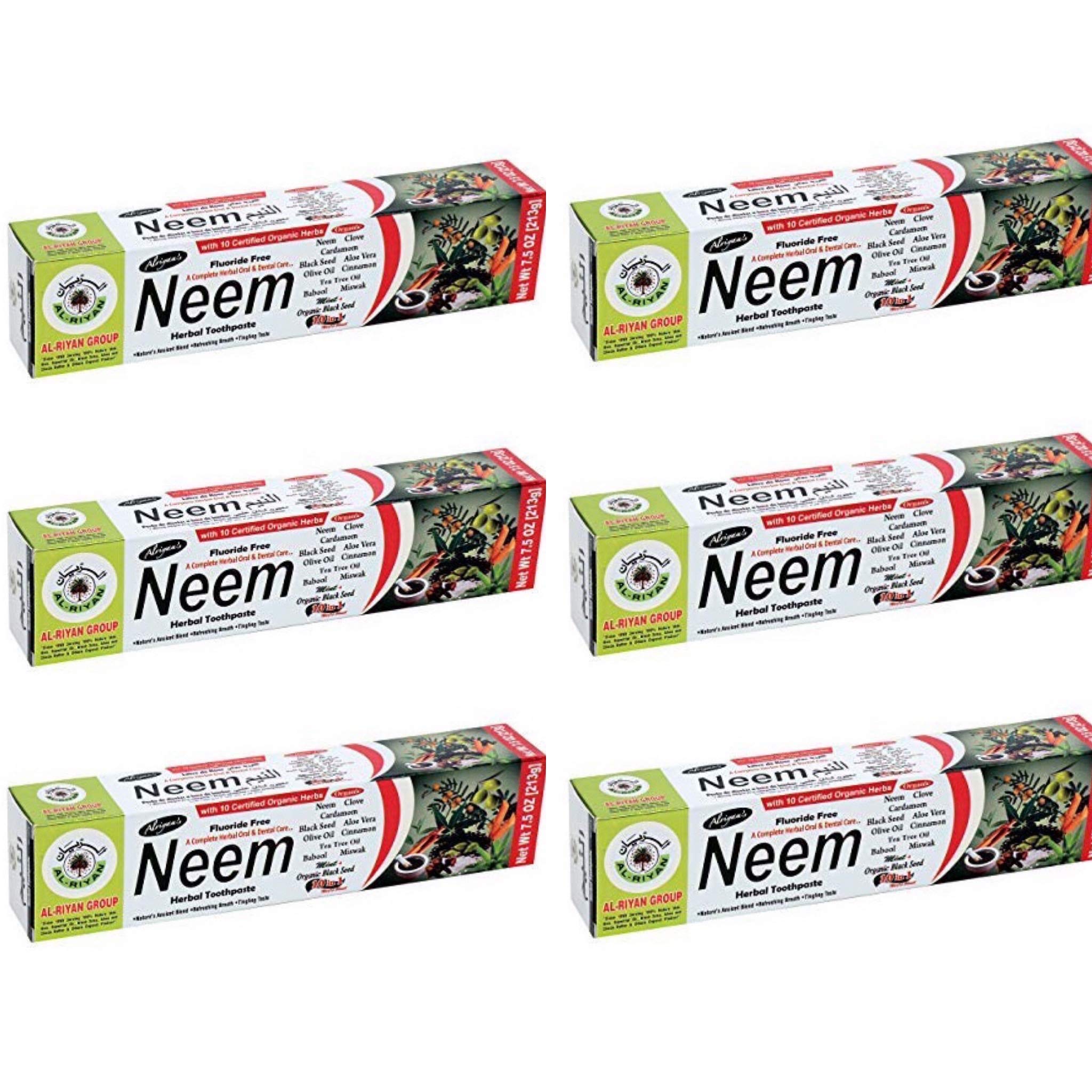 Pack of 6 - Organic Neem 10 in 1 Fluoride Free Toothpaste - Neem, Clove, Black Seed, Cardamon, Aloe Vera, Tea Tree Oil, Miswak, Clove - Herbal Blend - 7.05 oz
