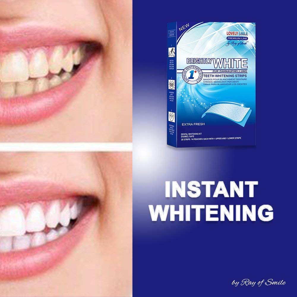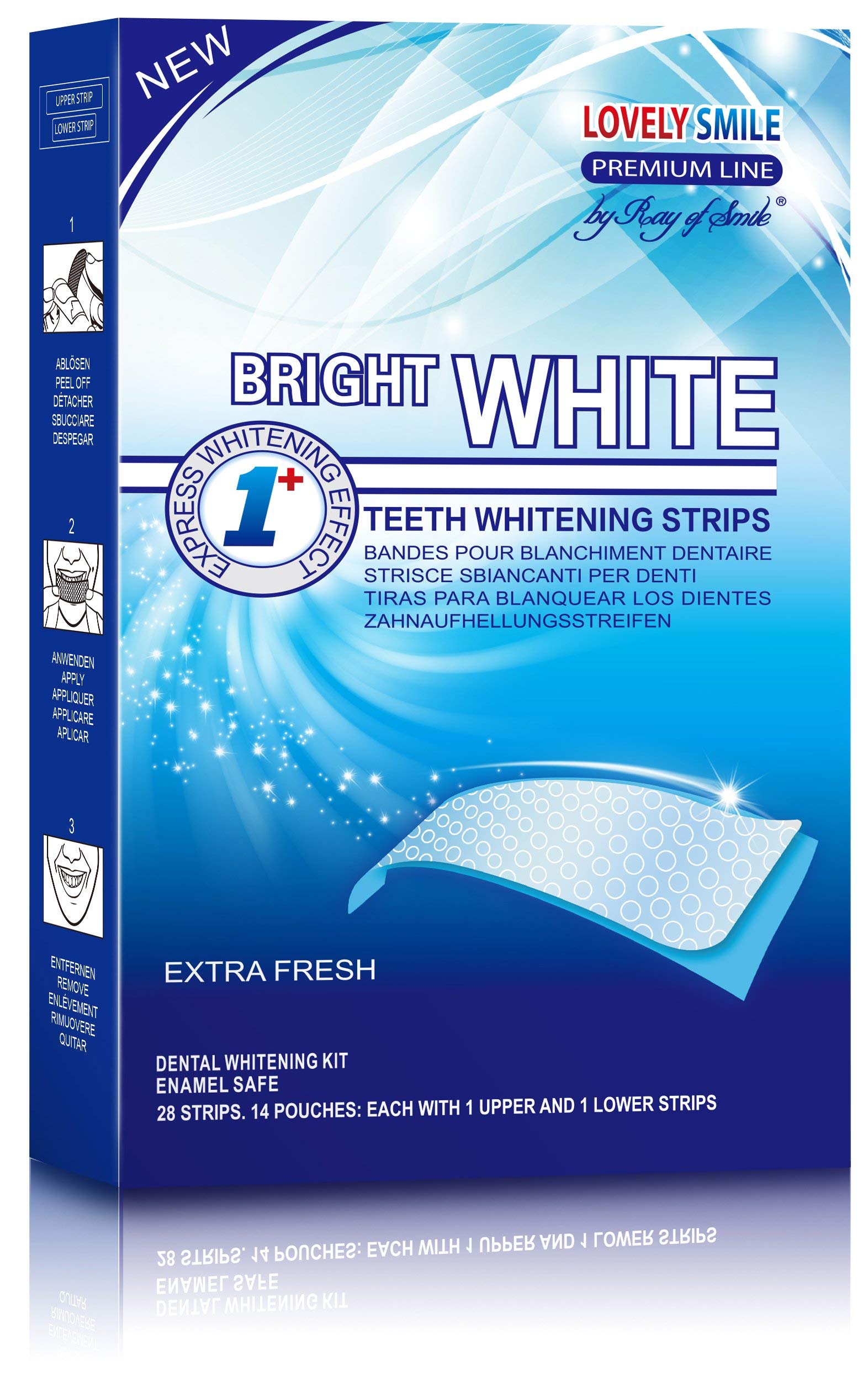 Professional Teeth Whitening Strips with Non-Slip Tech - Bright White - Lovely Smile Premium Line by RAY OF SMILE