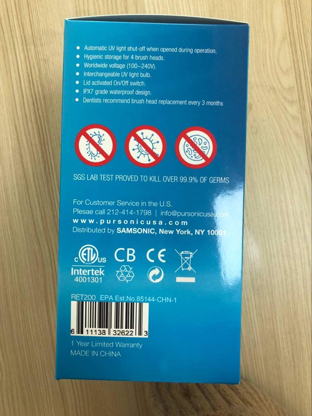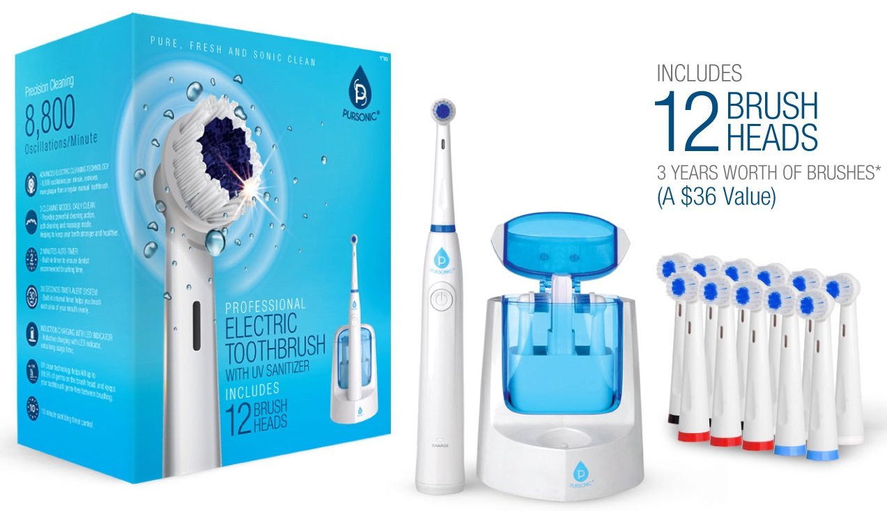 Pursonic RET200 Power Rechargeable Electric Toothbrush With UV Sanitizing Function, 12 Brush Heads Included