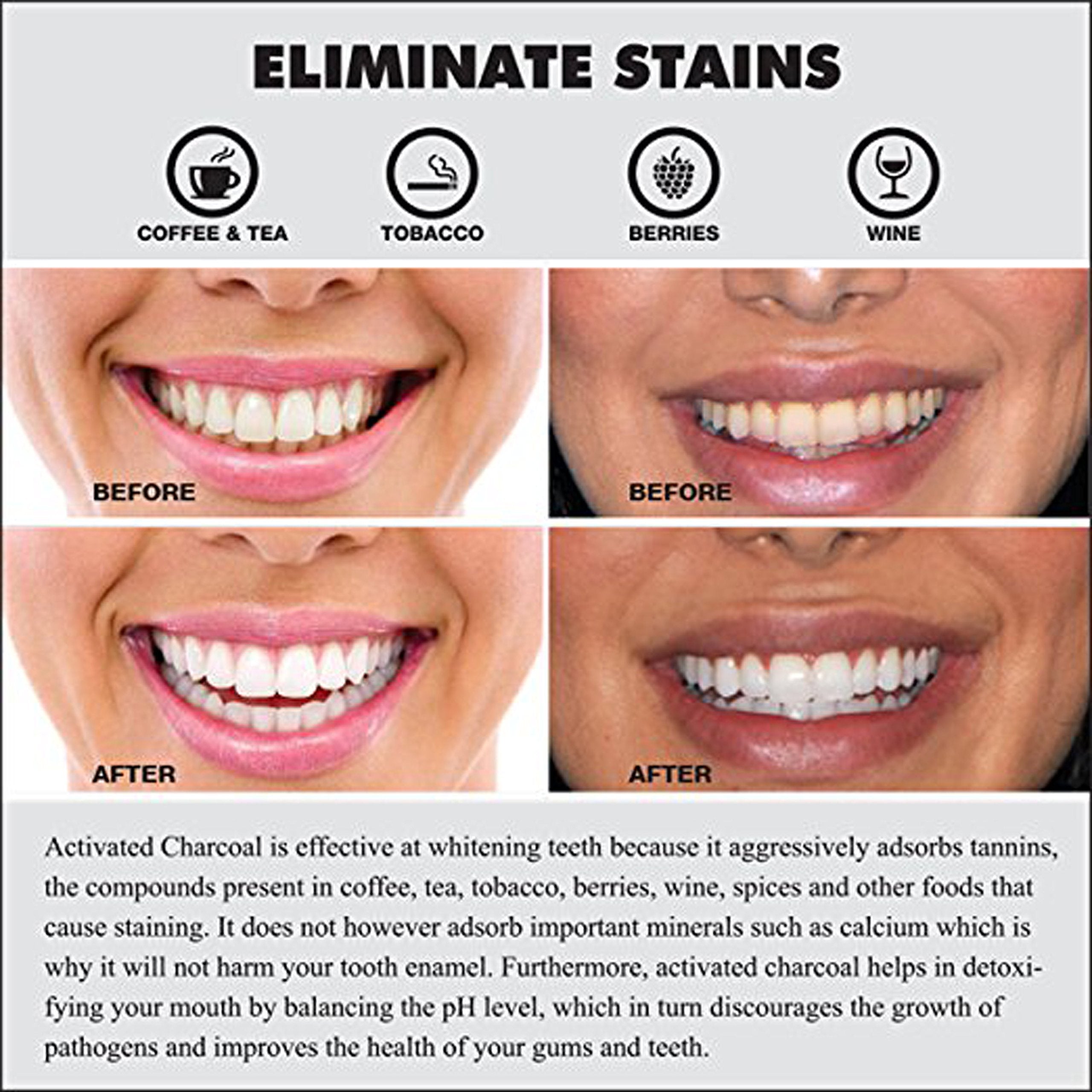 - HIGHLY EFFECTIVE FOR TEETH CLEANING: This product naturally whitens your teeth over time. It removes stains caused by a variety of things such as drinking coffee or wine or smoking and more. It detoxifies your mouth by removing plaque and bacteria, thereby preventing cavities, tooth decay, and gingivitis - without any harsh chemicals or bleach. It is more natural and effective than teeth whitening strips, gels, pens, lights & other whitening products that can strip your tooth enamel.