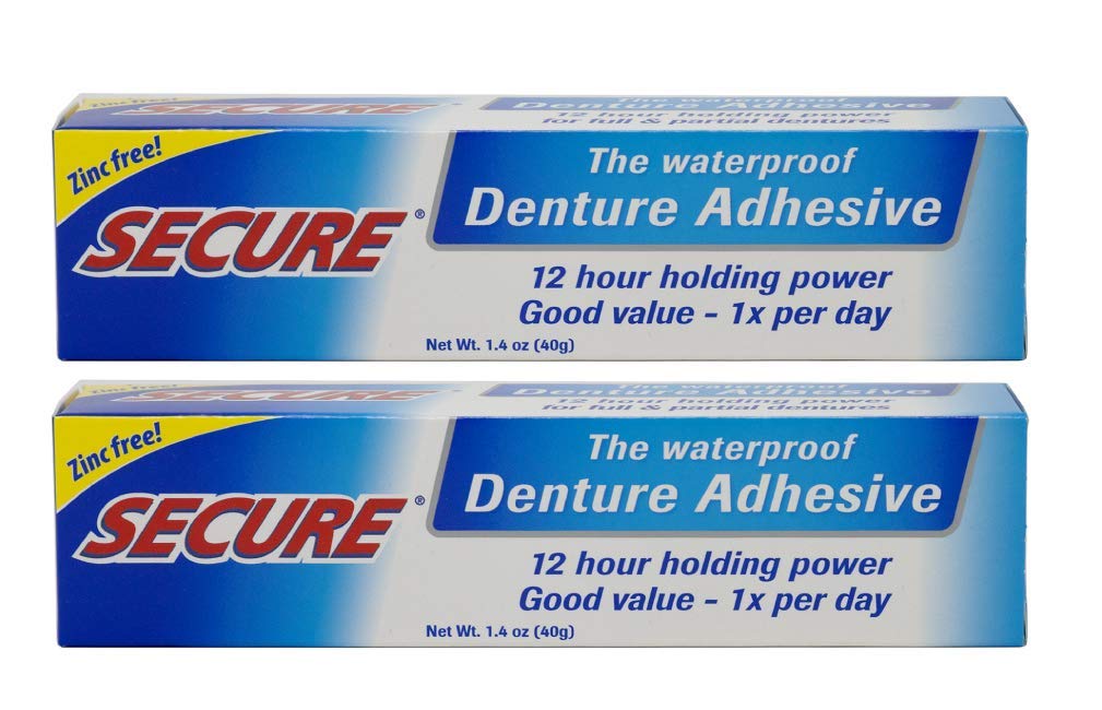 Secure Waterproof Denture Adhesive - Zinc Free - Extra Strong Hold For Upper, Lower or Partials - 1.4 oz (Pack of 2) by Secure Store