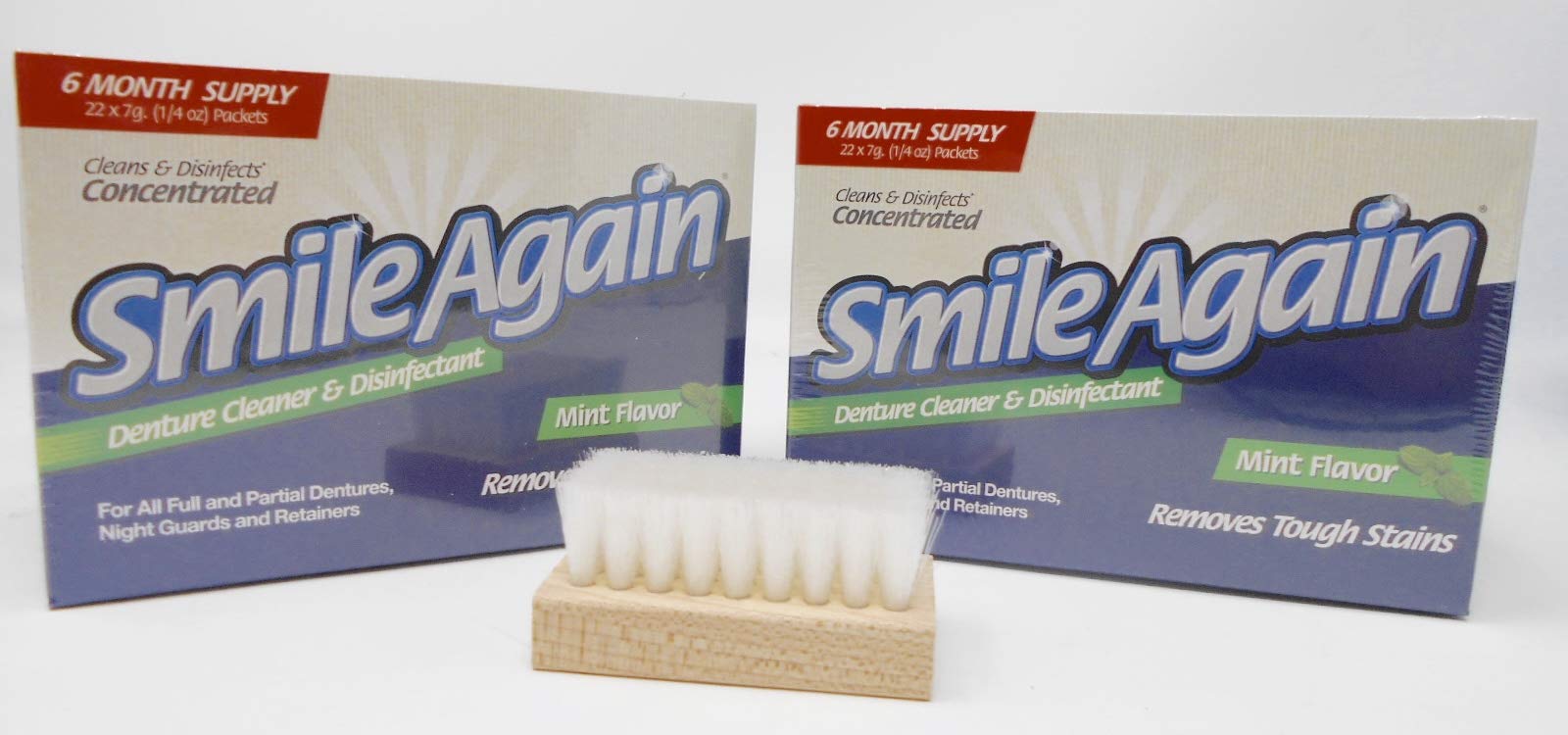 Smile Again Denture, Mouth Guard, Night Guard, Retainer Cleaner and Disinfectant - Mint Flavor - 6 Month Supply … (2-Pack) FREE Skin & Health RX Brush Bundle